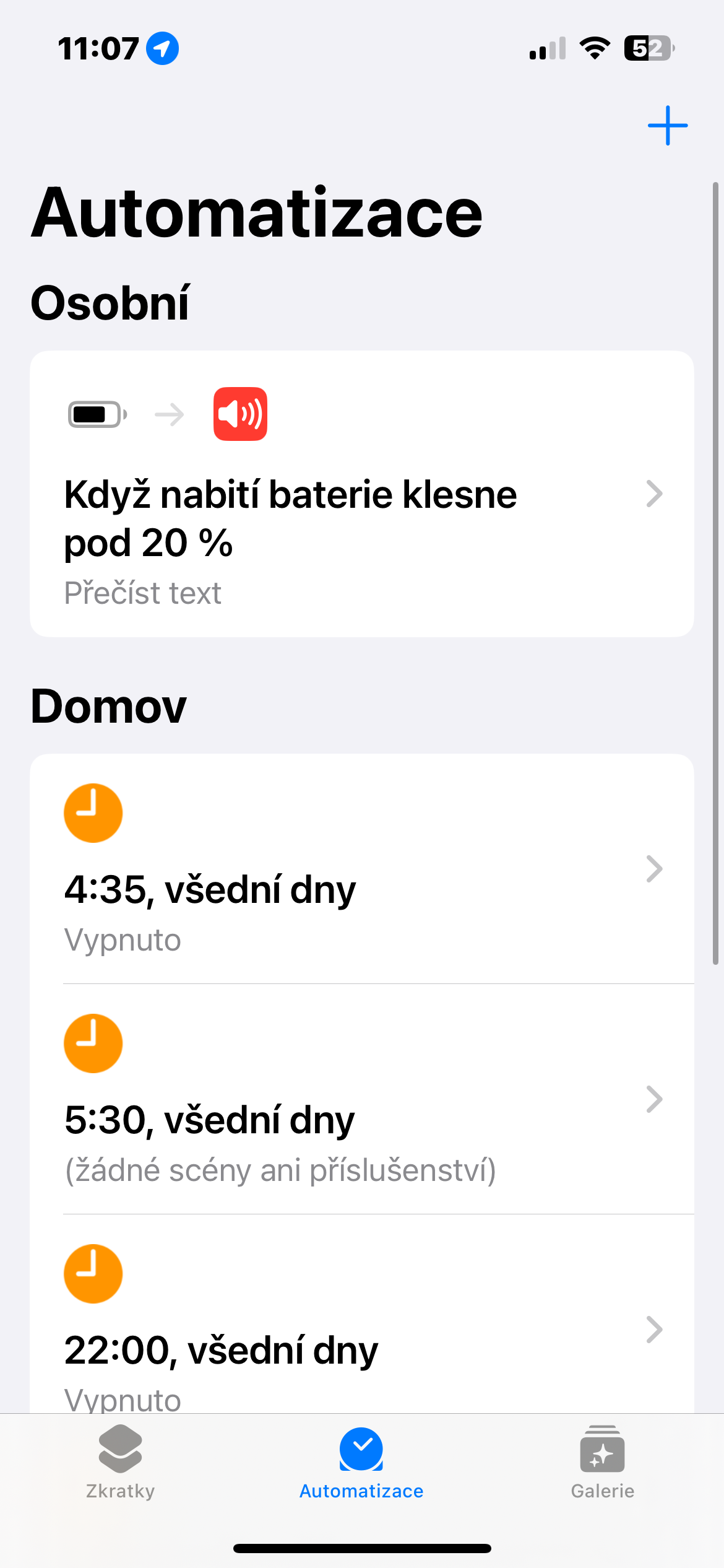 - Ve spodní části displeje klepněte na Automatizace.