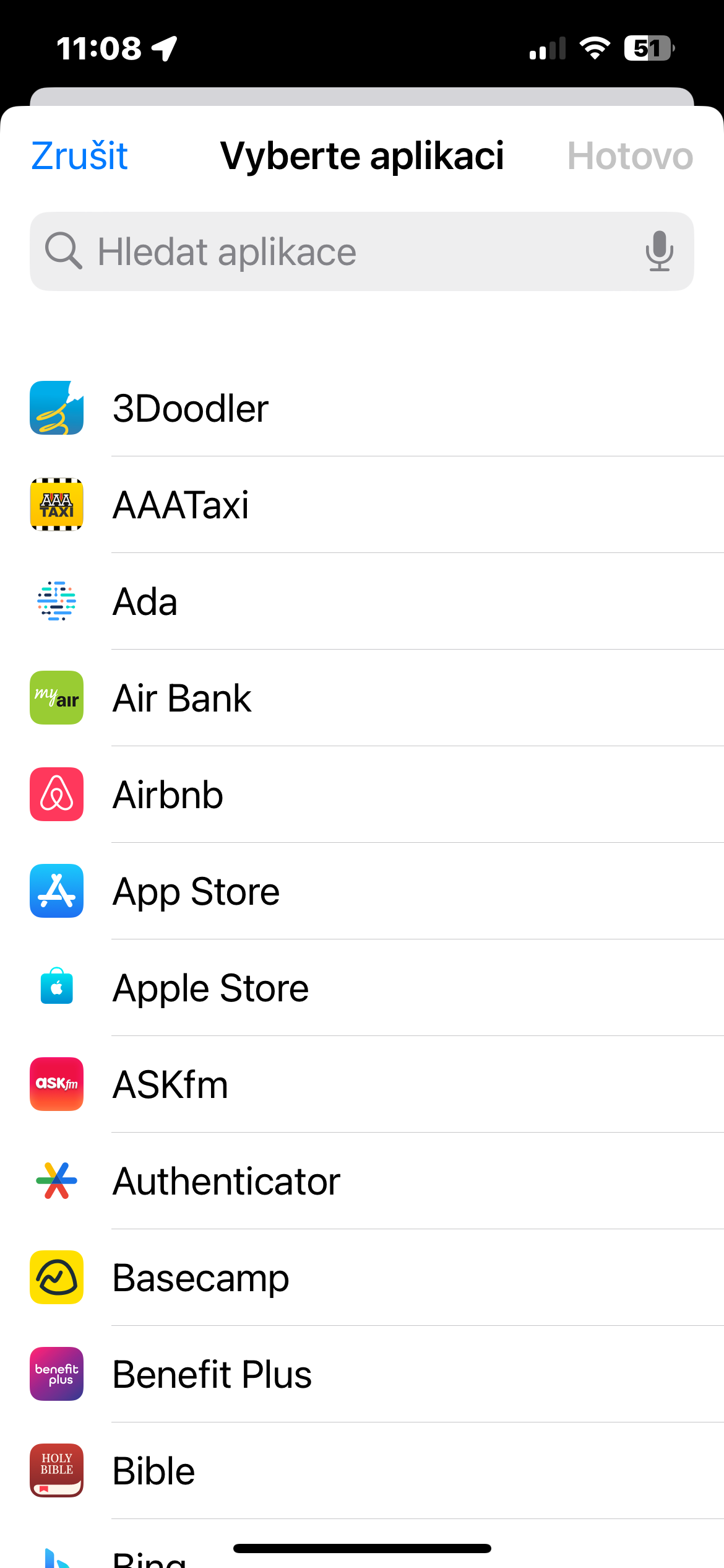 - Poté klepněte na Vybrat napravo od Aplikace a zvolte aplikaci, kterou chcete uzamknout za pomoci Face ID. Můžete vybrat i několik aplikací najednou. Jakmile budete mít výběr hotový, klepněte na Hotovo v pravém horním rohu.