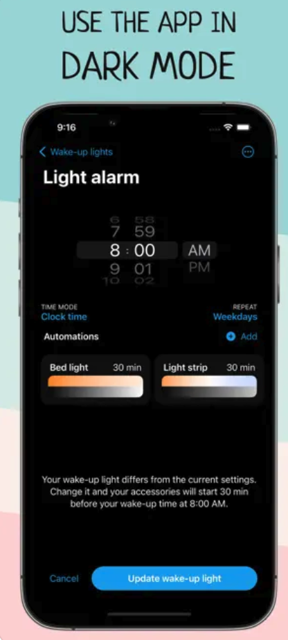Jste ráno unavení? Má vaše tělo pocit, že se mu nechce vstávat? Vytvořte si umělé svítání pomocí funkce Wake Up Light, aby vám ranní vstávání připadalo snazší a přirozenější. Aplikace Wake Up Light je určena pro použití se světly podporujícími HomeKit, nyní je snadné přidat budík s probouzejícím světlem do aplikace Apple Home.