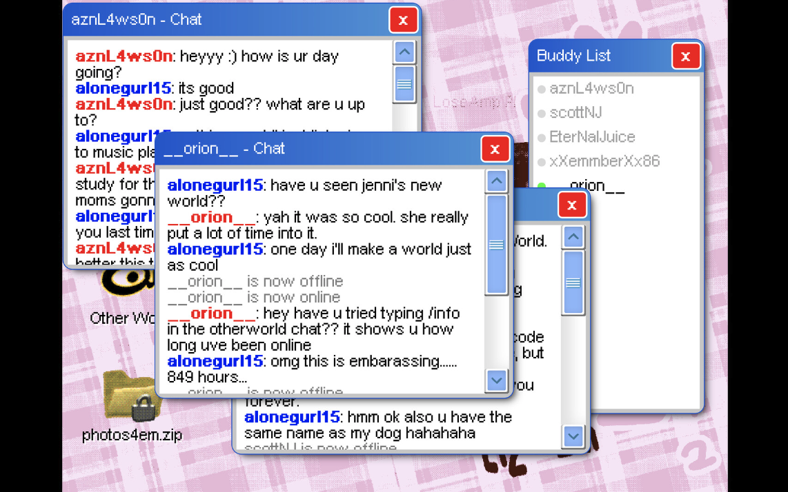 Vždycky vás bavilo čmuchat, že? Proto jste si koupili starý počítač, který jste viděli ležet mezi hromadami harampádí v garážovém výprodeji. Ani jste se neobtěžovali počítač naformátovat, než jste ho zapnuli. Byli jste zvědaví. Osobní počítač je přece prodloužením duše jiného člověka, všech jeho tajemství, projektů, interakcí. Last seen online je psychologická hororová úniková hra, která vychází z raných flashových her. Prohlédněte si soubory něčího počítače. Řešte hádanky a odhalujte tajemství, která se skrývají v počítači.