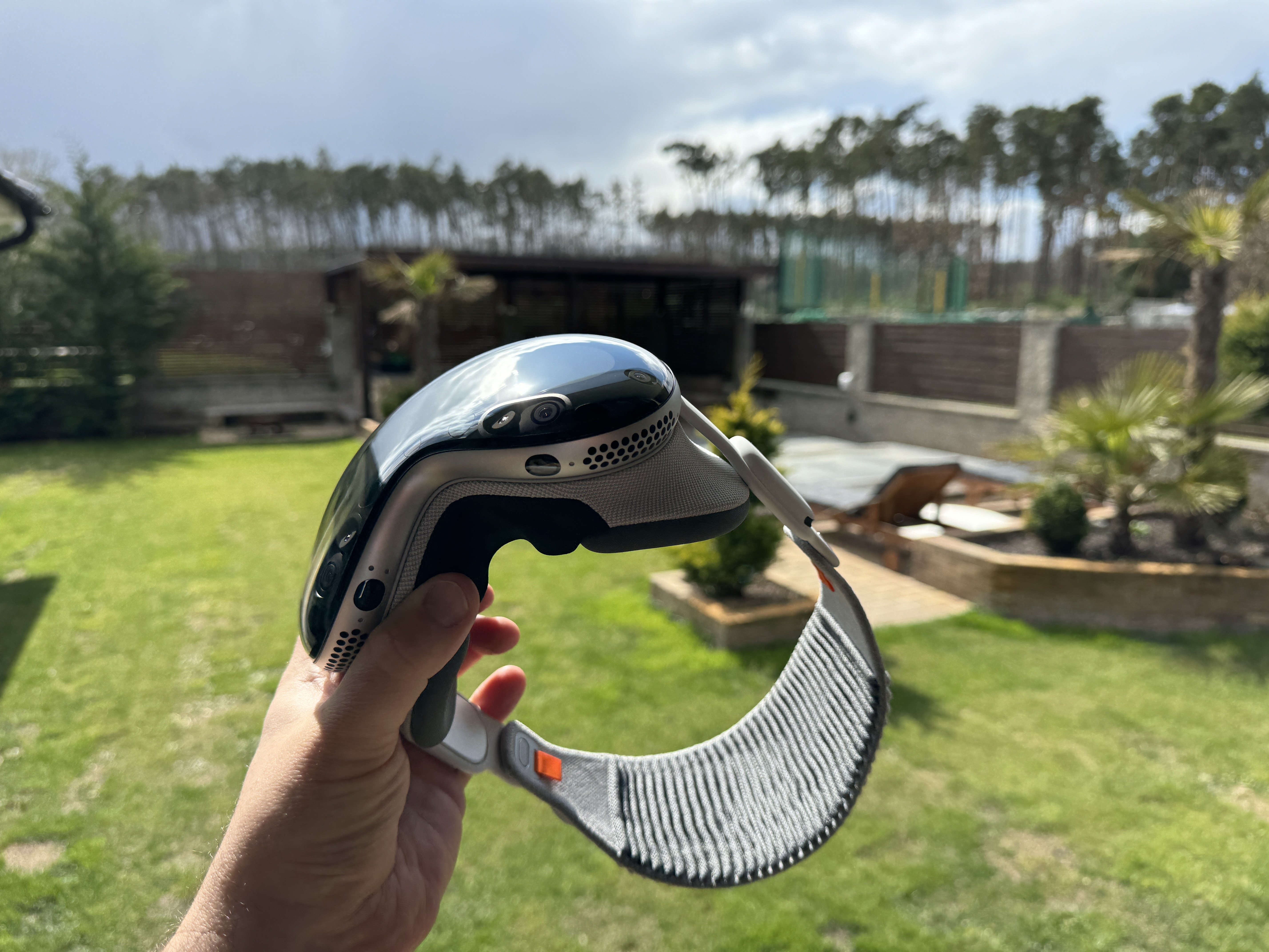 Tím nejdůležitějším u celého Vision Pro je jednoznačně obraz a ten je naprosto perfektní. Kamery stíhají v reálném čase na displejích uvnitř čoček ukazovat přesně to, co vidíte bez brýlí a do toho dovedou vkládat virtuální objekty. Vision Pro dokáže kompenzovat v podstatě cokoli počínaje náklonem vaší hlavy, konče nějakým prudkým pohybem. Jediné, na co si musíte zvyknout, je fakt, že obraz jako kdyby mírně zrní. Není to nic vážného a je to jen málo viditelné, ale zkrátka poznáte, že se díváte do displeje a nikoli do reálného světa pouze přes nějaké například dioptrické brýle.