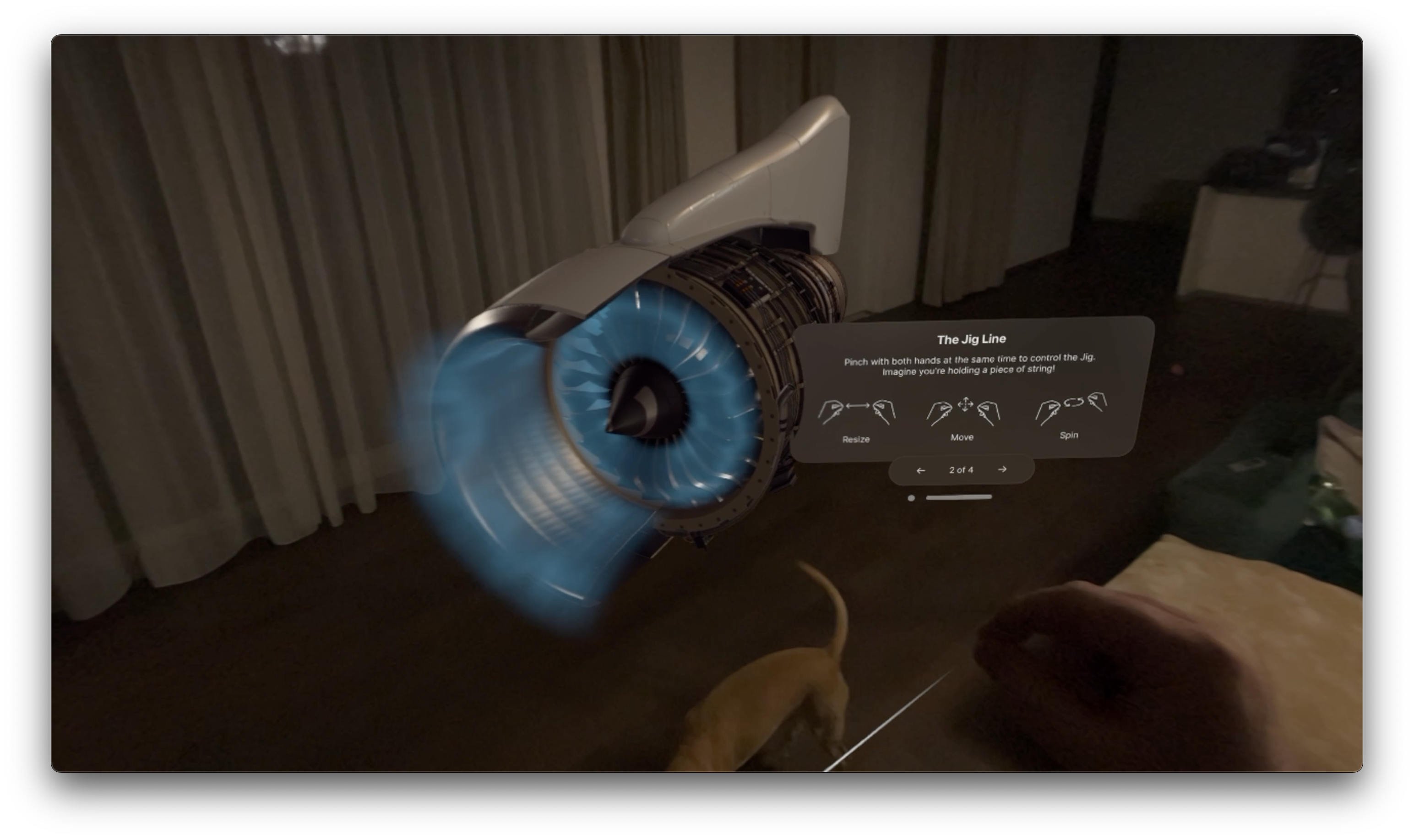 Co je geniální, je fakt, že okna, která nevypnete zůstávají trvale tam, kde jste je umístili. Pokud tedy necháte nad kuchyňskou linkou okno s YouTube, kde je program o vaření, bude na stejném místě i druhý den a to i když mezitím odletíte s Vision Pro na druhý konec světa. Můžete si tak po celém domě vytvořit virtuální prvky ve skutečném prostředí, které jsou zde trvale, respektive dokud je nezavřete.