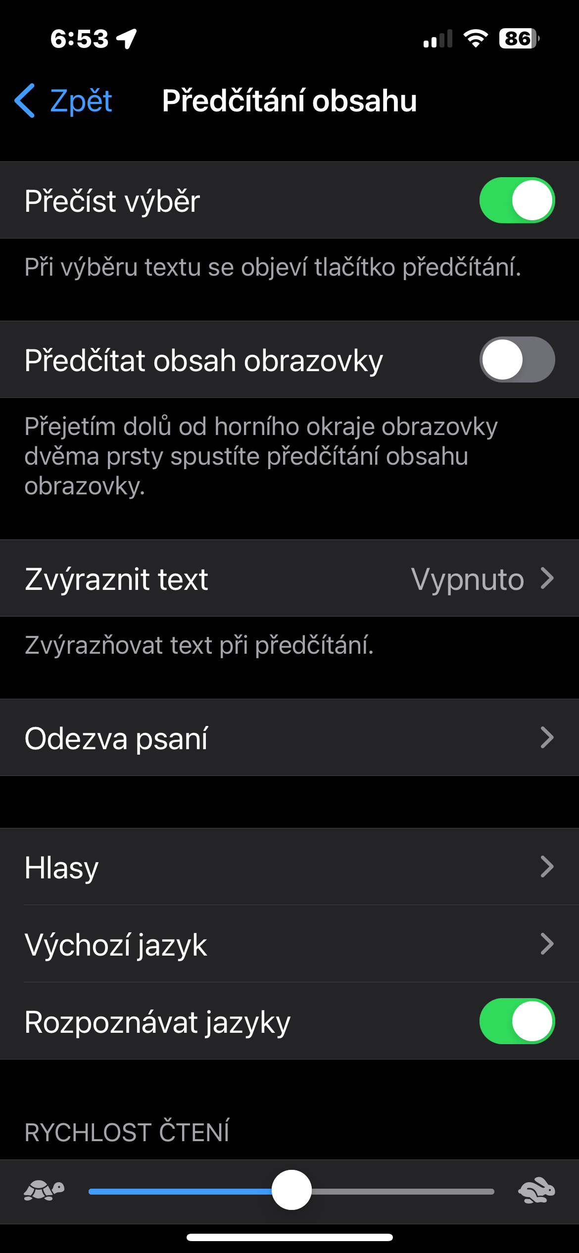 - Můžete také aktivovat zvýraznění textu při předčítání.