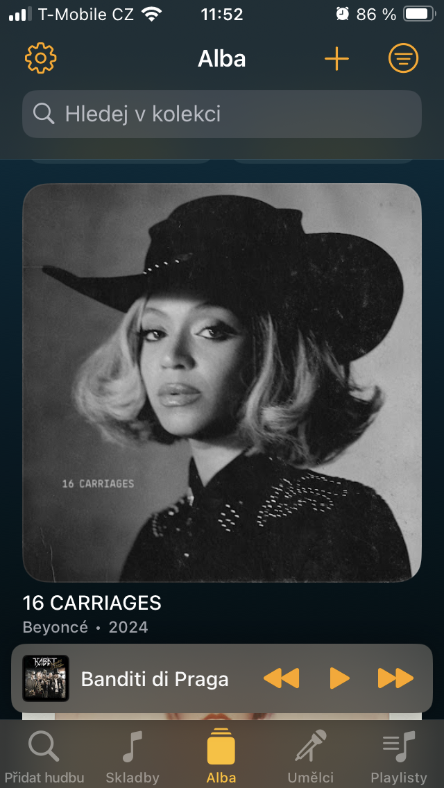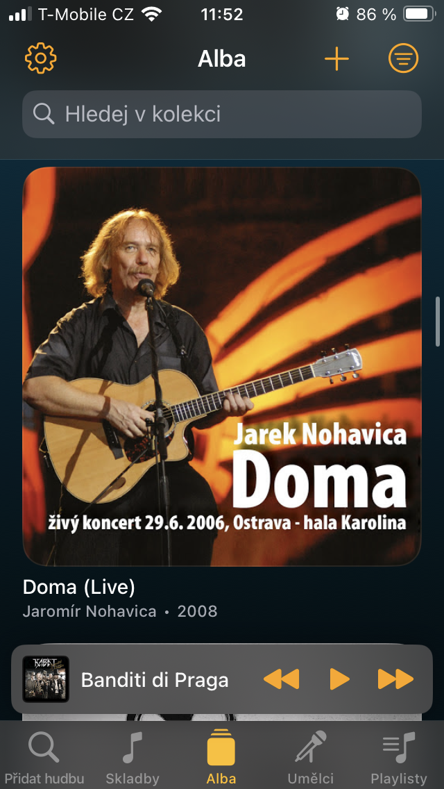 Mezi Alby najdete kromě kompletních desek, které jste z vyhledávání přidali, také obálky těch přiřazených k jednotlivým skladbám, což může velmi dobře posloužit jako inspirace k pozdějšímu rozšíření knihovny. Dlouhé stisknutí opět umožňuje provádět rychlé změny, včetně aktualizace metadat nebo odstranění z kolekce.