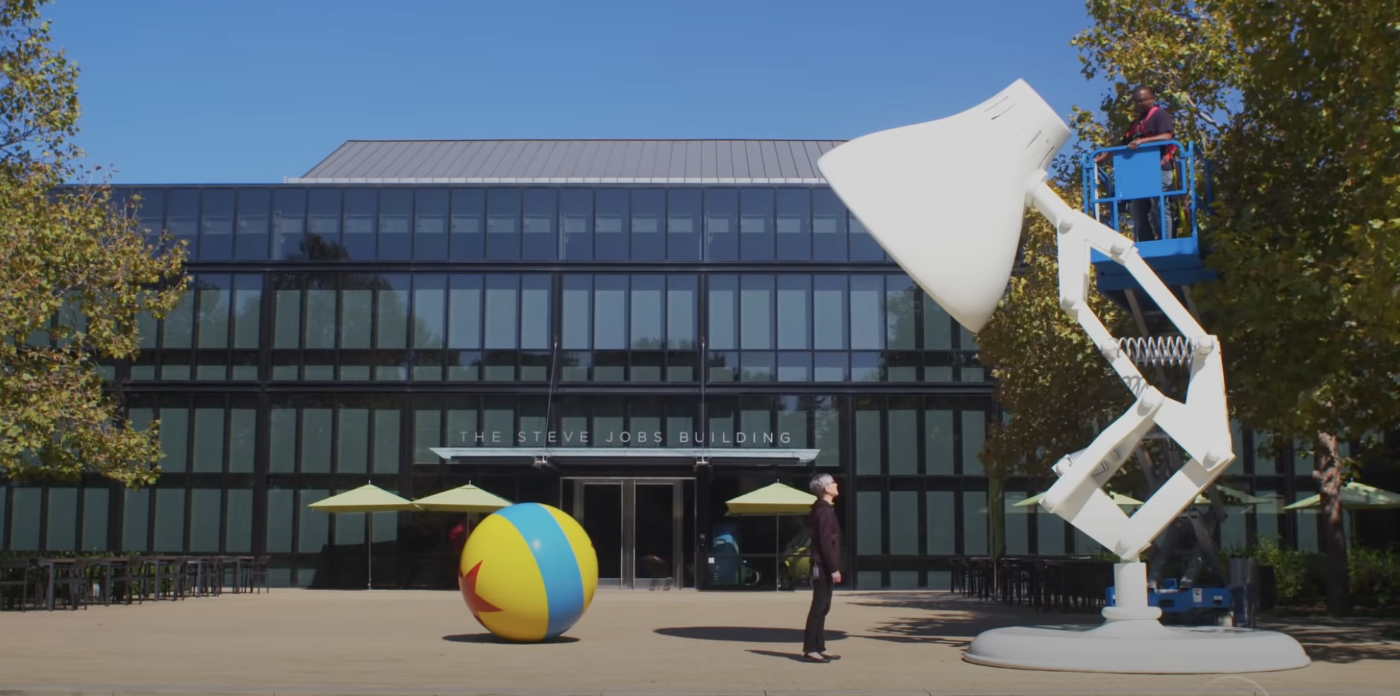 Když se v roce 2009 začal Pixar rozšiřovat, vznikla nová budova Pixar Phase II, ale ta původní stále fungovala a právě původní budova a vůbec první sídlo společnosti Pixar se po Stevově smrti přejmenovalo na The Steve Jobs Building. Samozřejmě, že na počest Steva Jobse. Na to, jak tato budova vypadá, se můžete podívat v následujícím traileru nebo přímo v dokumentu Inside Pixar na Disney+.