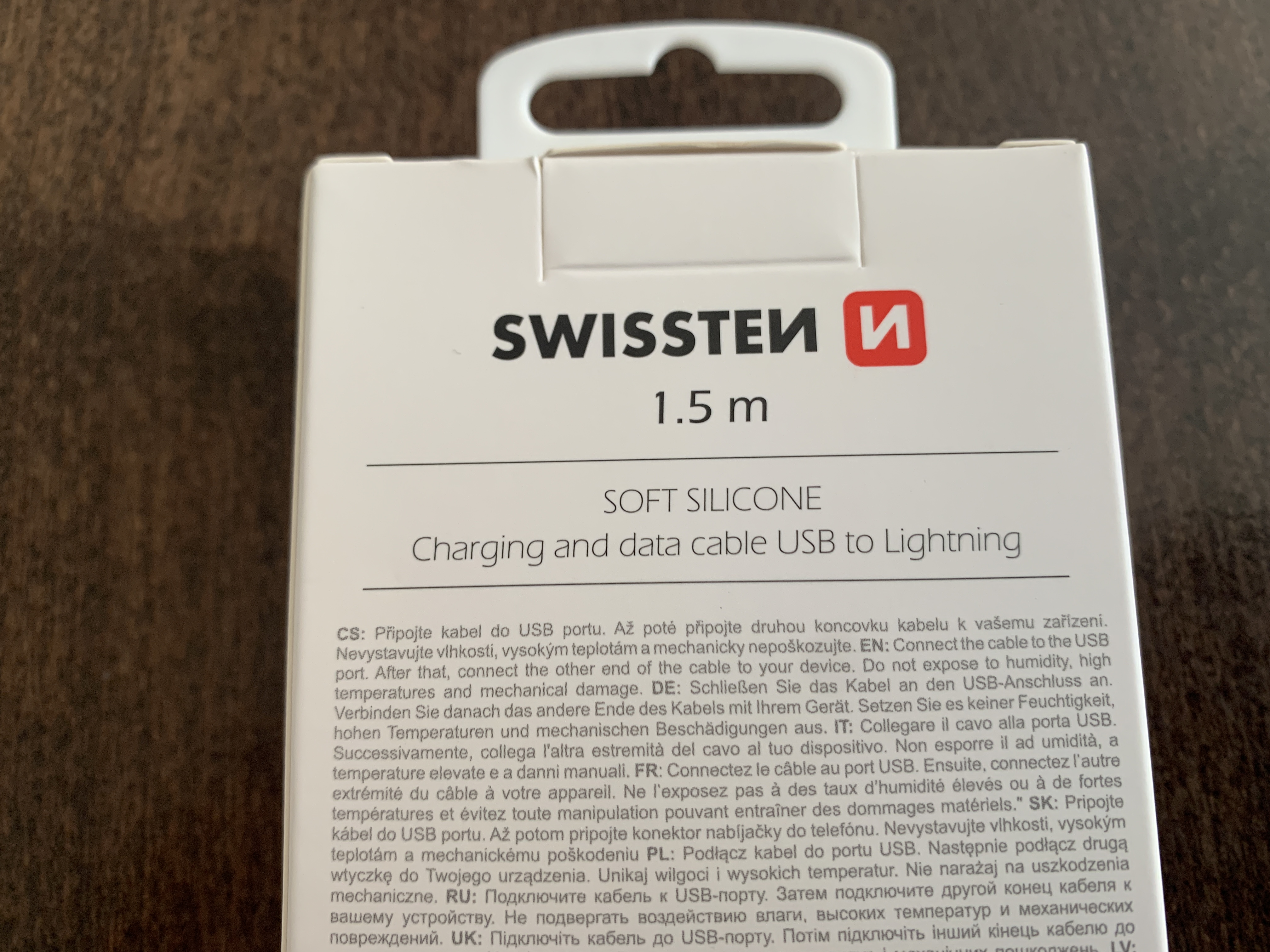 Pochopitelně se jedná o kabel, takže balení netřeba věnovat příliš velkou pozornost. V červenobílé krabičce klasicky naleznete pouze černý 1,5 metru dlouhý kabel. Jedná se o jeden z těch levnějších kabelů, nicméně kabel SWISSTEN SOFT SILICONE je vyroben z měkkého silikonu. Díky tomu je flexibilní za všech podmínek a má vysokou odolnost proti ohybu. Tímto kusem příslušenství lze dobíjet maximálním proudem 3A a kabel je možné využít i pro technologii rychlého dobíjení s výkonem až 60W.