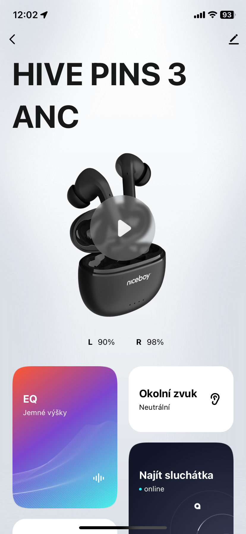 Pokud chcete sluchátka spárovat, vyjměte je z krabičky a přejděte do Bluetooth menu, v němž kliknete na nápis Niceboy HIVE Pins 3 ANC. Spárování potvrdí akustická výzva. Pokud chcete sluchátka ale využívat na plno, stáhněte aplikaci Niceboy ION. V ní kliknete na „Přidat zařízení“. Appka sama nalezne sluchátka, na které kliknete. V aplikaci můžete používat funkci Najít, měnit režimy ANC, Ambient a Standard a používat ekvalizér. V něm je celá řada přednastavených režimů (pop, rock, jazz apod.), které zaběhlý obecný režim o něco okoření. Záleží tedy na vás, zda chcete poslech o něco ozvláštnit. Pokud jste detailisti, je zde rovněž k nalezení manuální ekvalizér. Můžete si tedy s hudbou pohrát podle svého.