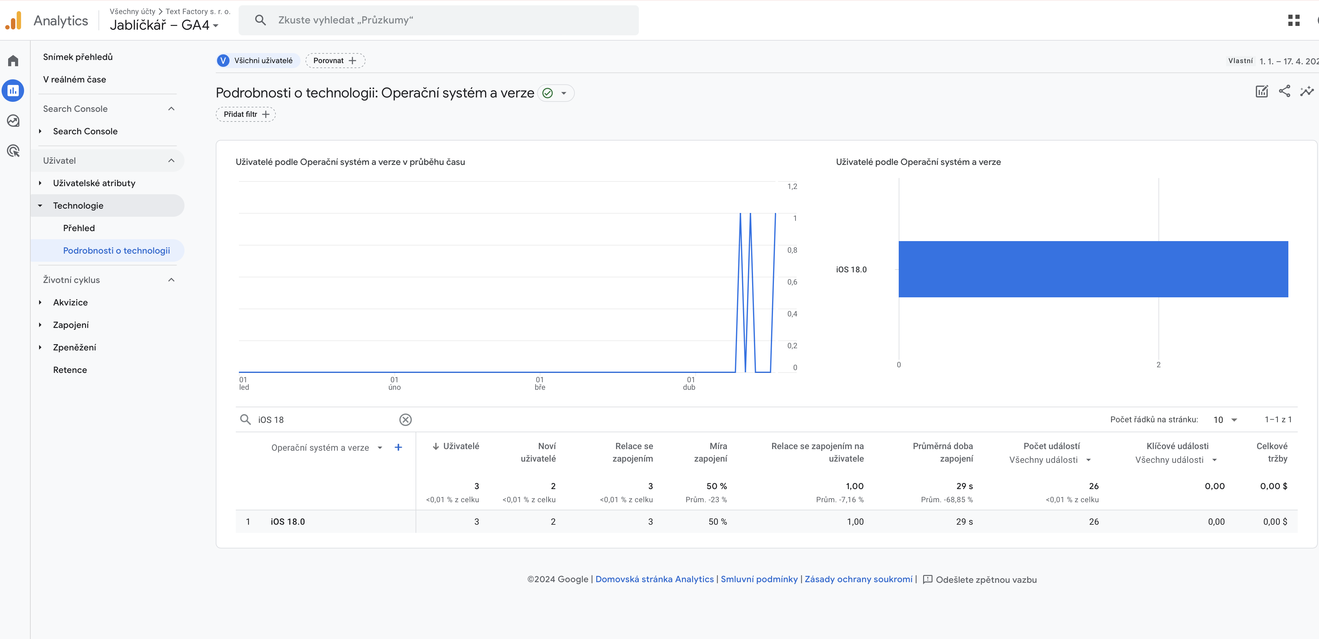 První zaznamenaná návštěva z iOS 18 koresponduje s prvními návštěvami iOS 15 a iOS 16, které se poprvé objevily taktéž v dubnu 2021, respektive 2022. Jedinou výjimku za předchozí roky tvoří iOS 17 v loňském roce, kdy se první návštěvník s iOS 17 objevil již 29. 1. 2023.