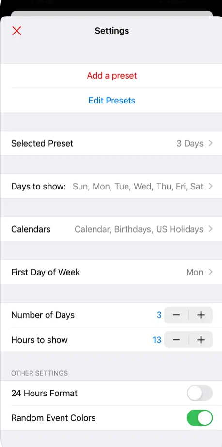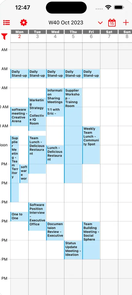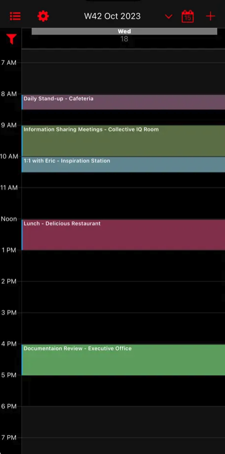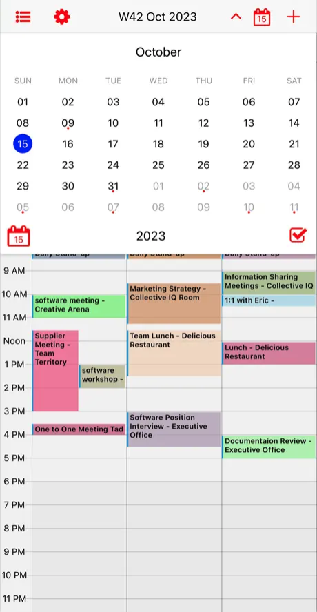 Aplikace Week Calendar Pro se zaměřuje na váš pracovní týden. Poskytuje úplné zobrazení kalendáře až pro tři pracovní týdny, které lze přiblížit stisknutím tlačítka. Klepnutím a podržením můžete vytvářet nové události nebo přetahovat stávající události po kalendáři a měnit jejich časový plán. Týdenní kalendář také umožňuje omezit zobrazené hodiny, zobrazit větší kalendář v orientaci na šířku a vytvořit vlastní předvolby týdnů.