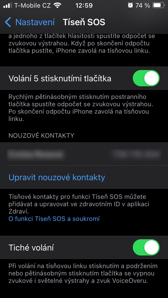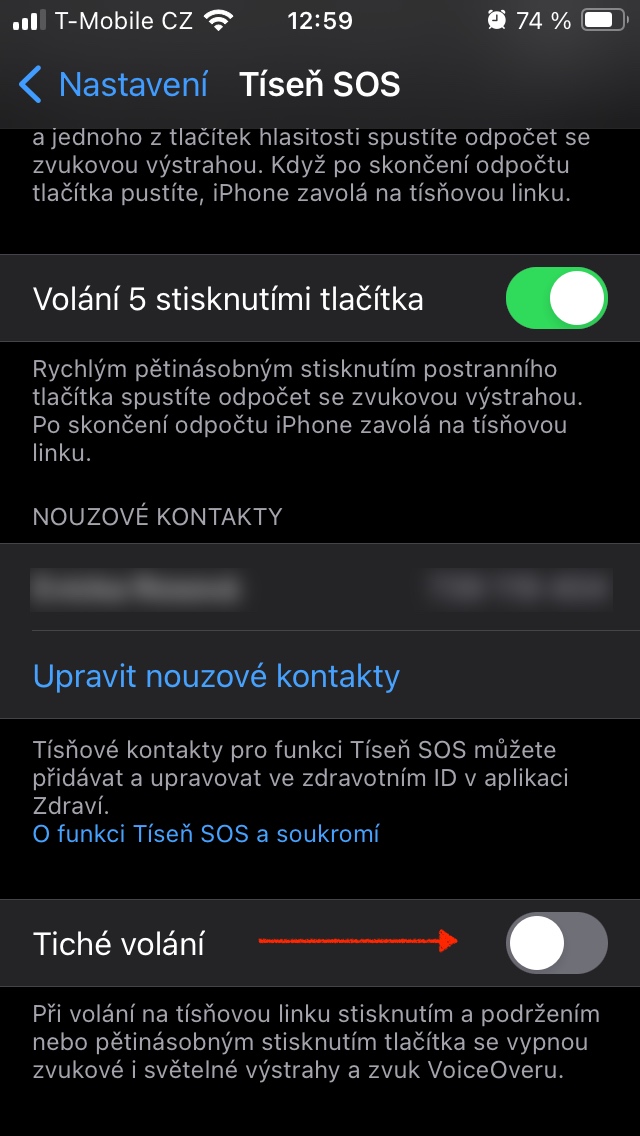 Do nebezpečných či jakkoli ohrožujících situací se jistě nikdo z nás nedostává rád. Když už k tomu ale dojde, může se za určitých podmínek hodit funkce Tiché volání kontaktující na základě nastavení podržením a puštěním nebo pětinásobným stisknutím tlačítka iPhonu tísňové služby. Povolit spojení bez vydávání zvuku můžete z Nastavení, pod Nouzové volání SOS, kde se po volbě způsobu kontaktování objeví přepínač Tiché volání, který stačí zapnout.