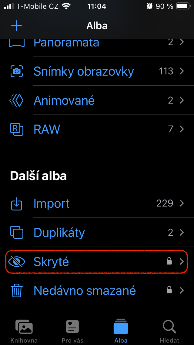 Ve vaší knihovně se mohou nacházet fotografie nebo videa, u nichž nechcete, aby se k nim za určitých okolností, kdy například k vyřízení naléhavého hovoru půjčíte telefon známému, někdo snadno dostal. Pro tyto případy mají naštěstí Fotografie v iPhonu tajnou složku, jejíž obsah je přístupný pouze skrze Face ID, Touch ID nebo po zadání přístupového kódu. Dlouze stiskněte vybranou fotografii nebo video a v objevivší se nabídce vyberte možnost Skrýt. Budete-li chtít později procházet tato média, naleznete je mezi ostatními Alby jako Skryté. Odemknete je pomocí biometrického ověření nebo zmíněného zamykacího kódu iPhonu.