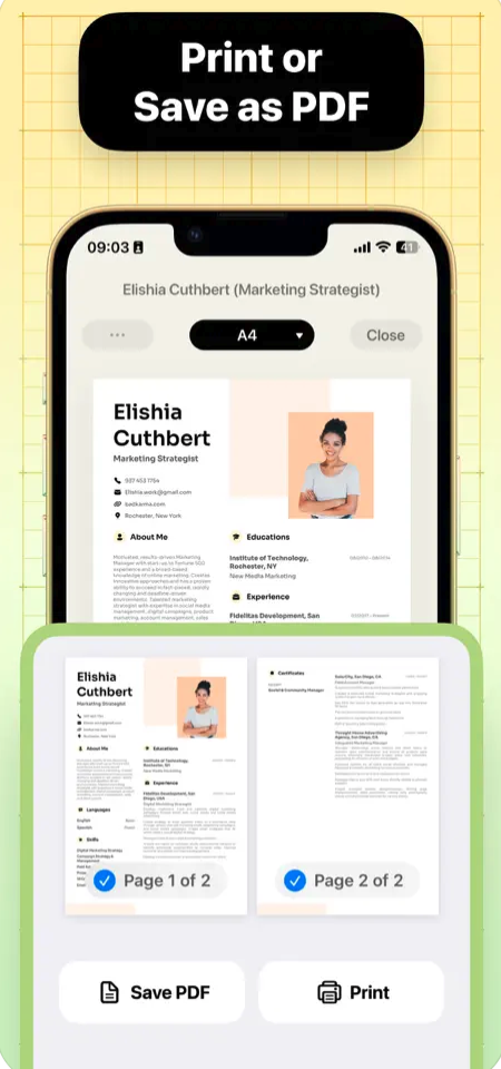 Resume Maker vás provede celým procesem tvorby životopisu. Vytvořte si profesionální životopis, který představí vaše dovednosti, zkušenosti a kvalifikaci. Můžete si vybrat styl a formát, který vás bude reprezentovat.
