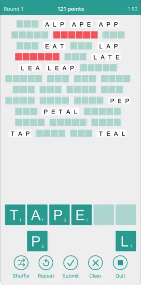 That Word je zábavná a edukativní hra pro iPhone, která vám pomůže rozšířit si slovní zásobu a zlepšit své jazykové dovednosti. Hra nabízí širokou škálu herních režimů a aktivit, které vás zabaví a zároveň pomohou učit se nová slova. That Word je jednoduchá, nenáročná hra na hledání slov. Cílem je nasbírat co nejvíce bodů tím, že napíšete co nejvíce slov ze šesti náhodně vybraných písmen. Každá sada šesti písmen může hláskovat alespoň jedno šestipísmenné slovo – abyste mohli pokračovat do dalšího kola, musíte jedno z těchto šestipísmenných slov najít dříve, než se vyčerpá čas.