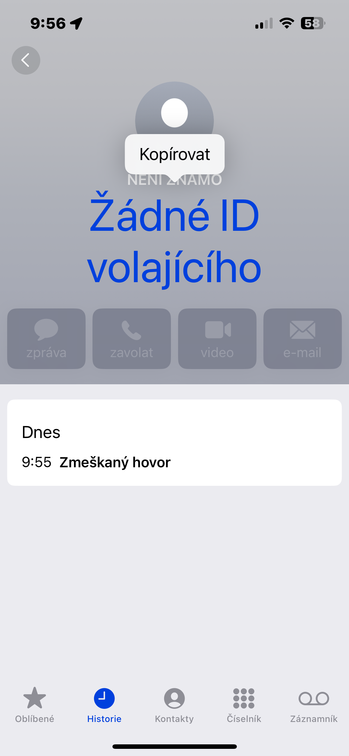- Přejděte do seznamu nepřijatých hovorů a klepněte na ⓘ u příslušného neznámého čísla.