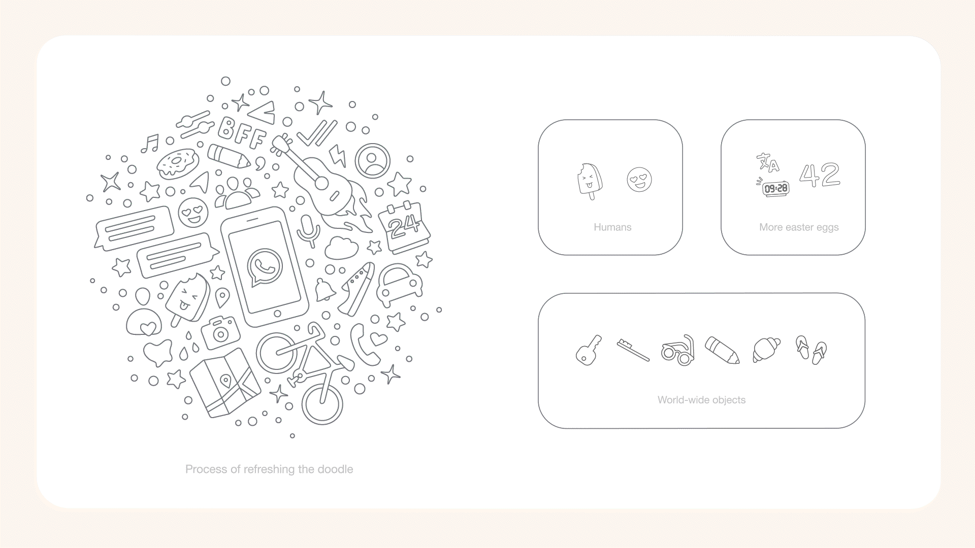Naše filozofie designu vychází z našich produktových principů, podle kterých je WhatsApp jednoduchý, spolehlivý a soukromý. Filtrujeme je skrze designovou optiku, abychom vytvořili intuitivní a jasné toky, které fungují univerzálně a pomáhají lidem navazovat kontakty a zároveň chrání jejich soukromí. Věnujeme velkou pozornost tomu, jak lidé používají svá zařízení, a navrhujeme naše uživatelské rozhraní tak, aby doplňovalo jejich stávající zkušenosti, aby jim WhatsApp připadal známý a snadno se v něm orientovali. Pokud víte, jak své zařízení používat, mělo by být používání aplikace WhatsApp snadné.“