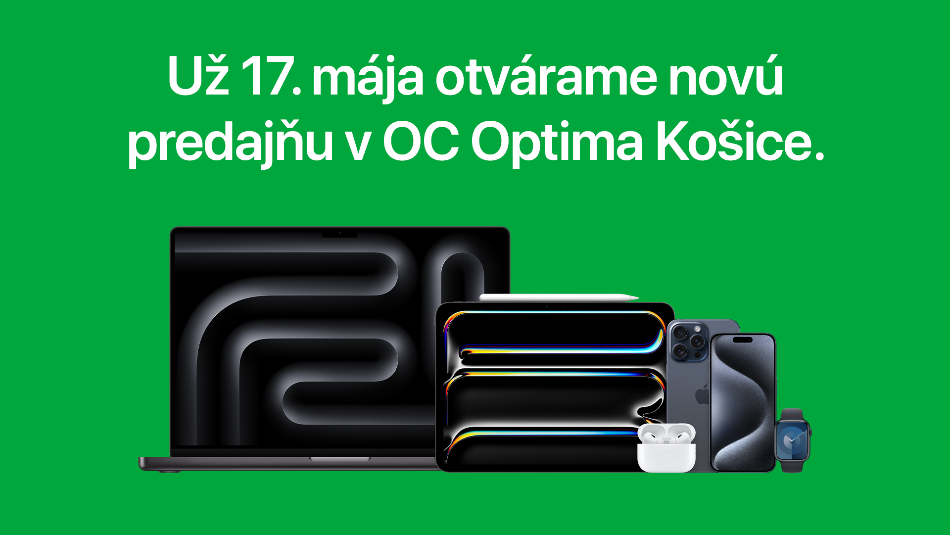 Komerční sdělení: Na pátek 17. května (17. 5.) si slovenský iStores přichystal další velkou událost. V OC Optima Košice se totiž chystá přesně v 9:00 otevřít svou novou prodejnu a jak se u podobných příležitostí sluší a patří, pro první návštěvníky si přichystal parádní doprovodný program ve formě slev (nejen) na Apple produkty, ale třeba i soutěži o poukázky v hodnotě 100 €.
