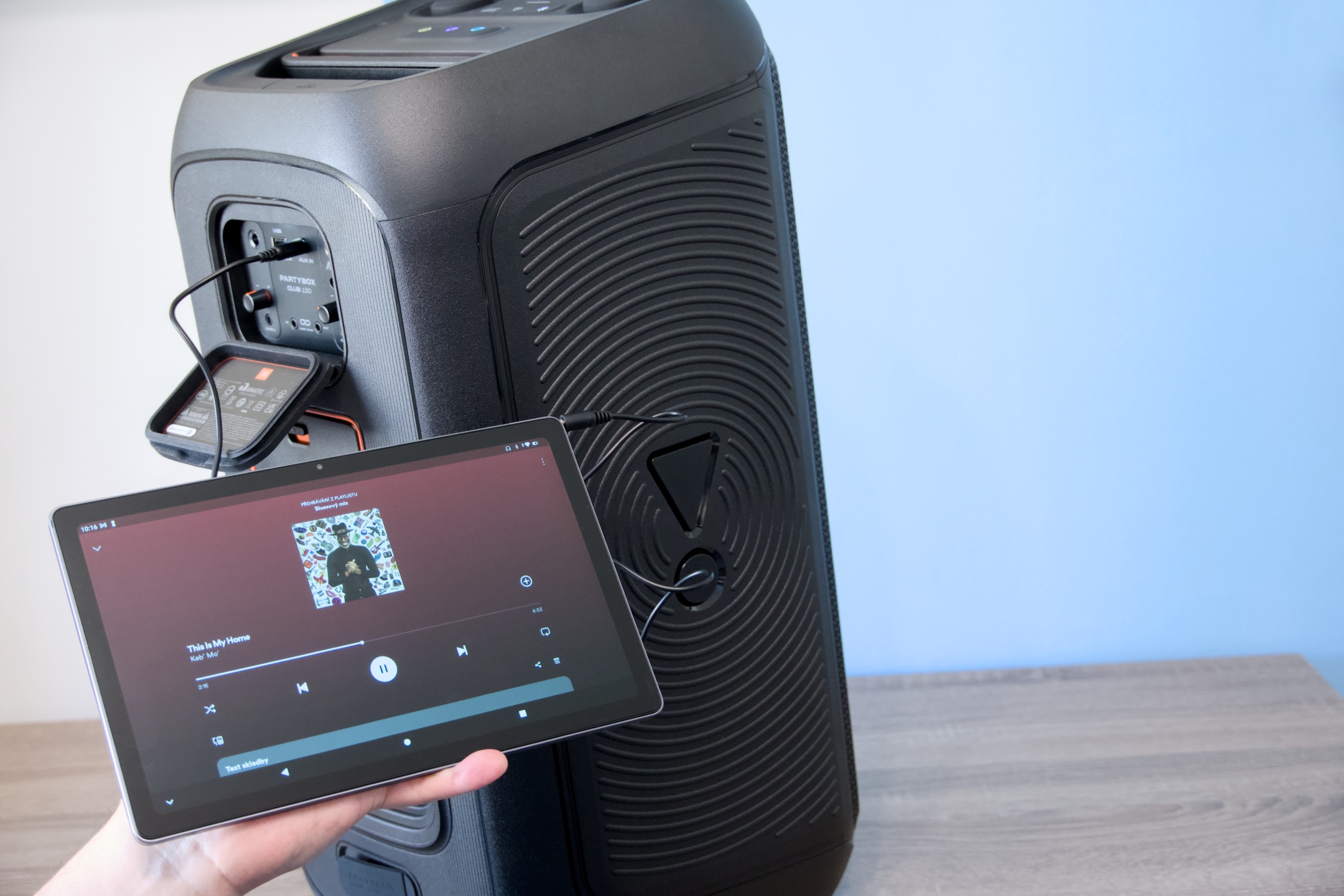 Líbí se mi, že po vložení patřičně naformátovaného flash disku CLUB 120 prohledá obsah, automaticky započne přehrávání a informace o jeho průběhu zobrazí v aplikaci. Při testování rychlosti nabíjení se PartyBox ze stavu, kdy se v důsledku nízké úrovně vypnul, znovu dostal na 100 % (zatímco nebyl používán) za 2 hodiny a 18 minut.
