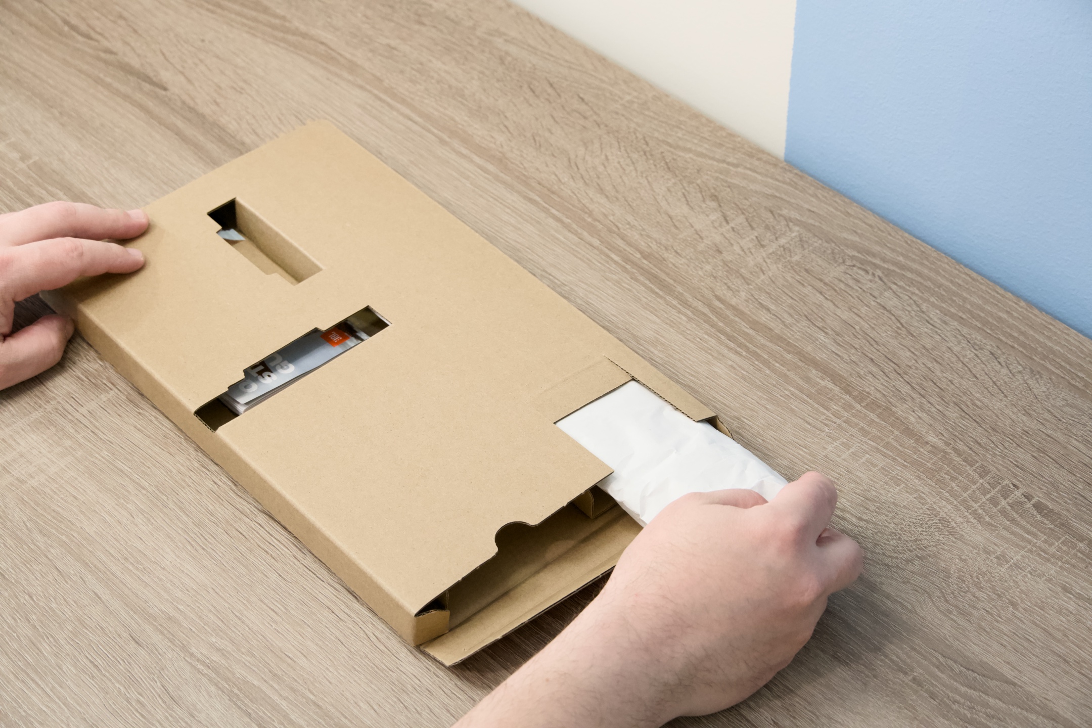 Jestliže se rozhodnete pro PartyBox CLUB 120, z krabice s barevným potiskem ze sójového inkoustu jej vyprostíte jednoduše rozevřením, překlopením k zemi a vysunutím směrem vzhůru. Tento postup je vyobrazen na víku, takže si s ním každý snadno poradí, přičemž se tak současně vyhne případnému poškození, které by mohlo hrozit při snaze o vybalení jiným způsobem. Pak už spatříte na podlaze dvě kartonové krajnice a samotný reproduktor v textilním obalu. Po odstranění ochranných prvků se vám naskytne pohled na produkt v jeho plné kráse, zatímco na dně objevíte malý box obsahující 2m napájecí kabel a dokumentaci.