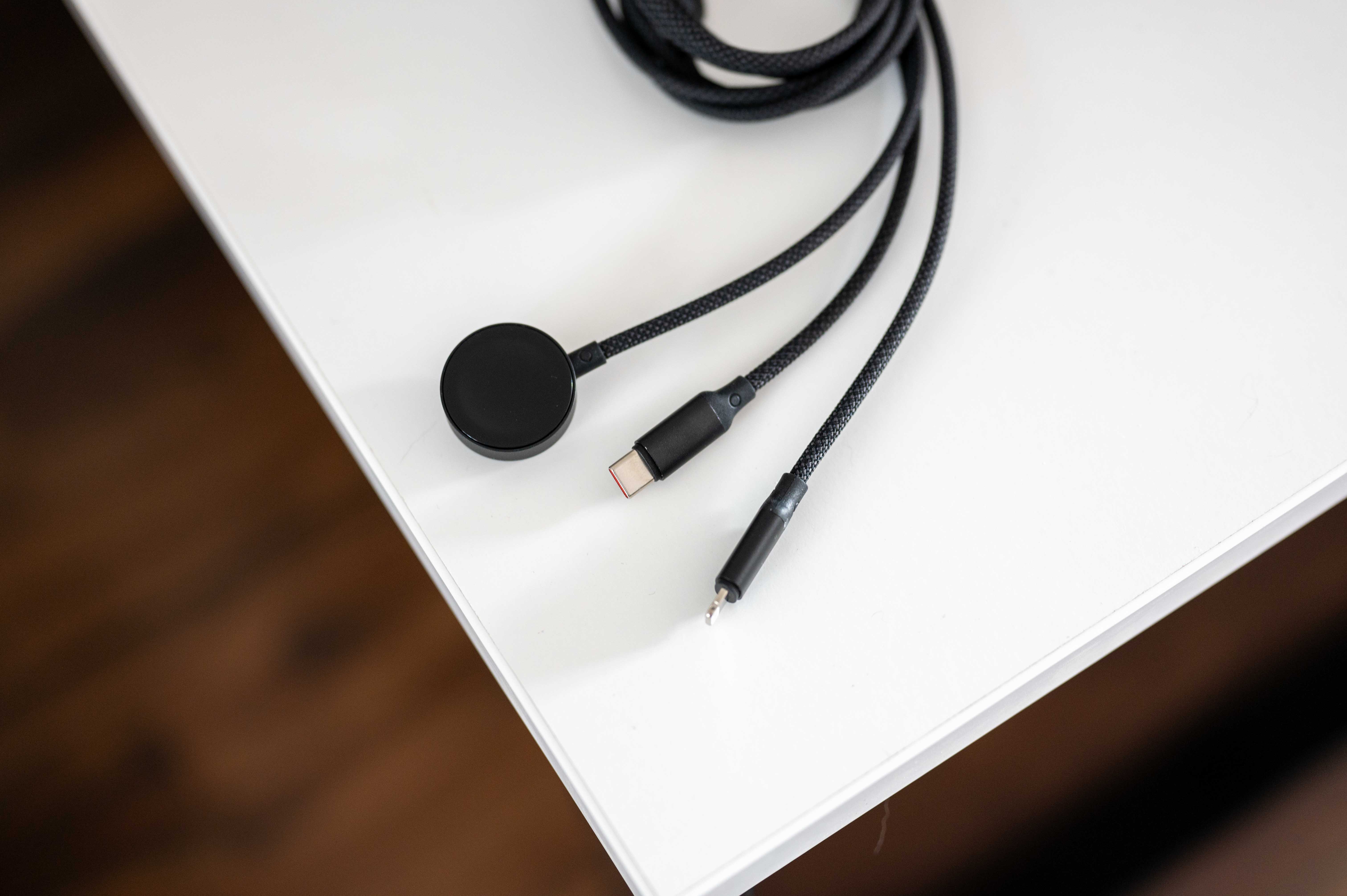 Abyste využili kabel naplno, je samozřejmě třeba jej připojit k adaptéru, který bude schopen dodat výkon, jenž pro nabíjení či napájení vaší elektroniky potřebujete. Jinými slovy, pokud chcete nabíjet maximální rychlostí přes Lightning, magnetický puk pro Apple Watch a USB-C, hypoteticky potřebujete 125W adaptér. Pravdou ale je, že naplno kabel vytíží valná většina z nás jen stěží. Například chcete-li co nejrychleji nabít iPhone 15 Pro, stačit vám k tomu bude 27W adaptér, jelikož tyto modely podporují maximálně 27W kabelové nabíjení. V kombinaci s 10W pro Lightning a 2,5W pro Apple Watch se tedy dostáváme na nějakých zhruba 40W. Podobně výkonný adaptér by vám pak stačil třeba i pro nabíjení MacBooku Air, jelikož k tomu dostanete taktéž v základu 30W nabíječku.