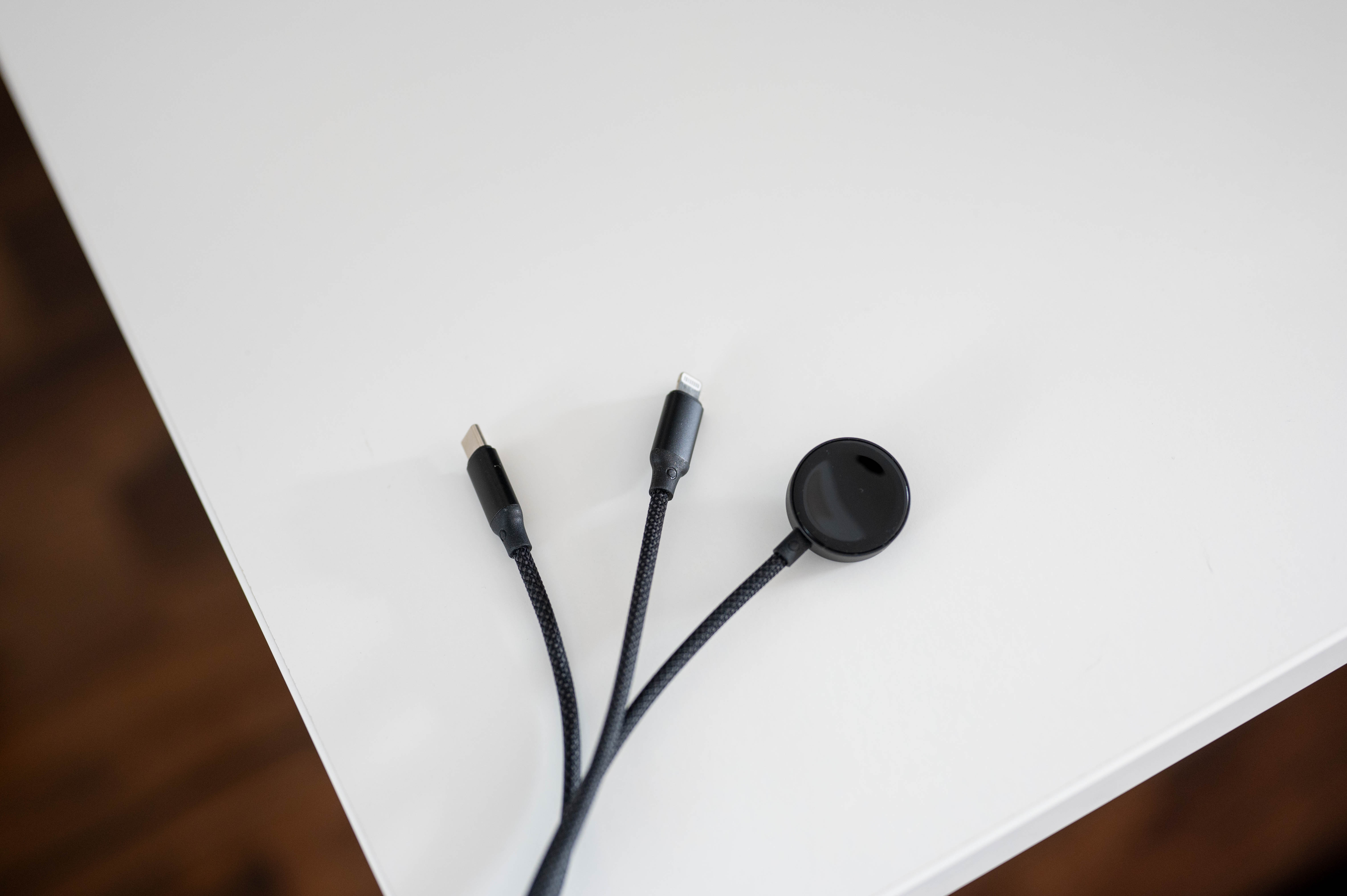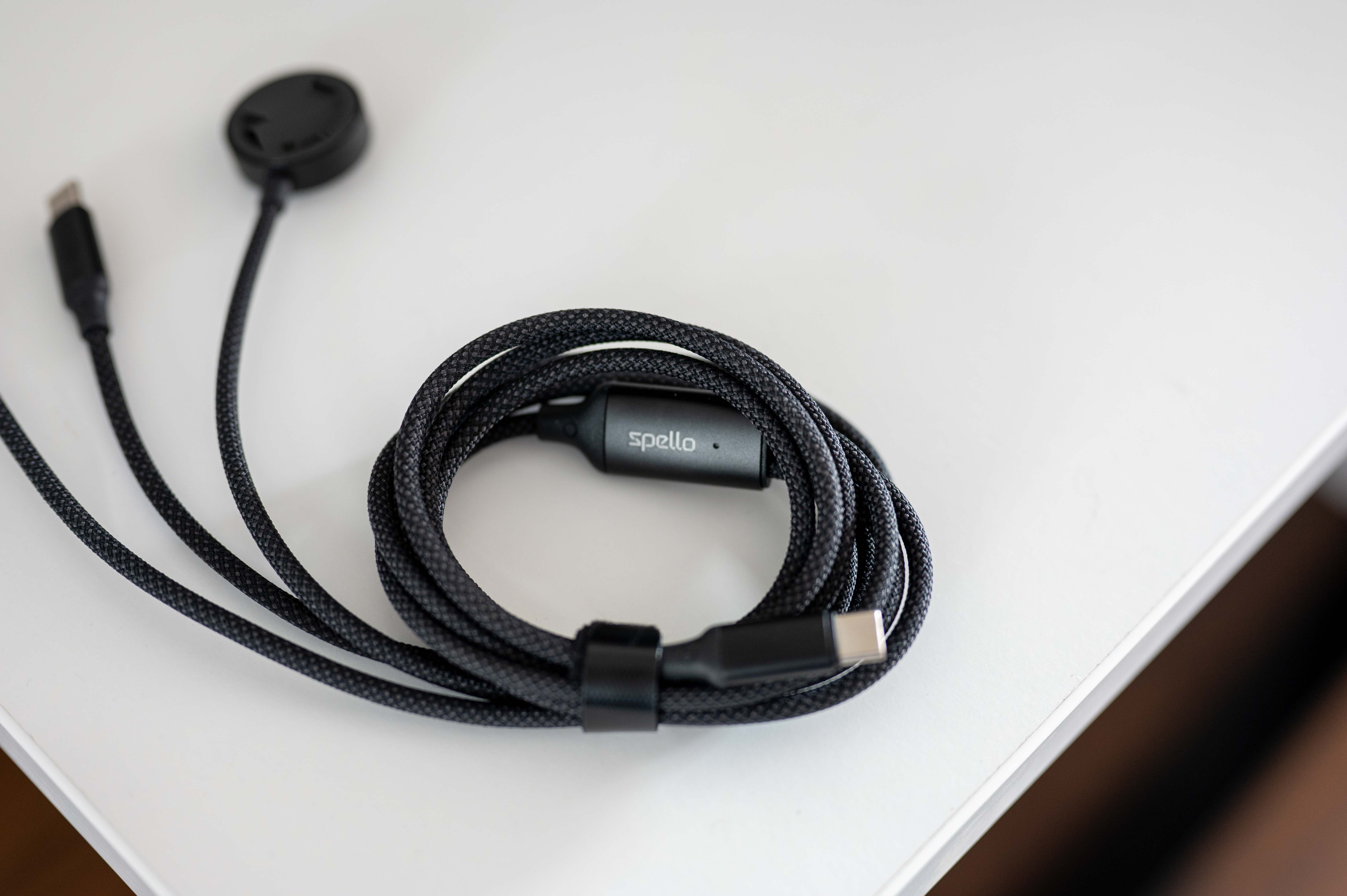 Jak už jste určitě pochopili z titulku, kabel Spello 3v1 je trojitý kabel, který má na jednom konci USB-C, na druhém pak kabely USB-C, Lightning a magnetický puk pro Apple Watch. Super je pak to, že USB-C podporuje Power Delivery a nabízí výkon až 100W. Co se týče Lightningu, ten nabízí maximálně solidních 10W a magnetický puk pro Apple Watch pak 2,5W. Zatímco tedy USB-C lze k rychlonabíjení iPhonu využít bez problému (stejně jako k nabíjení MacBooků, iPadů či jiných zařízení), v případě Lightningu je třeba počítat s tím, že z něj rychlonabíjení nevykřešete, stejně jako tomu je u puku pro Apple Watch. USB-C má pak ještě další pozitivum a to konkrétně podporu přenosu dat až rychlostí 480 Mb/s.