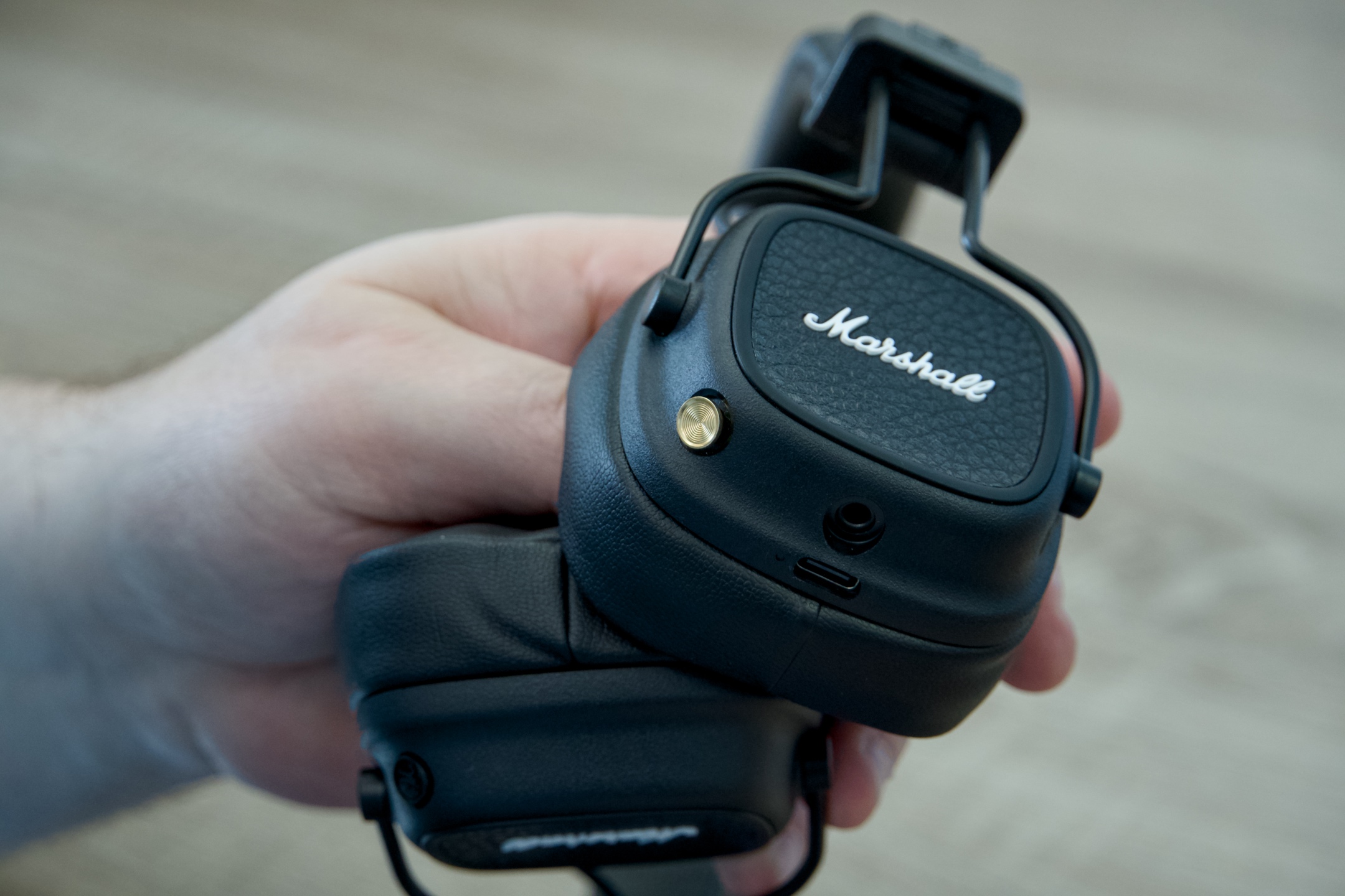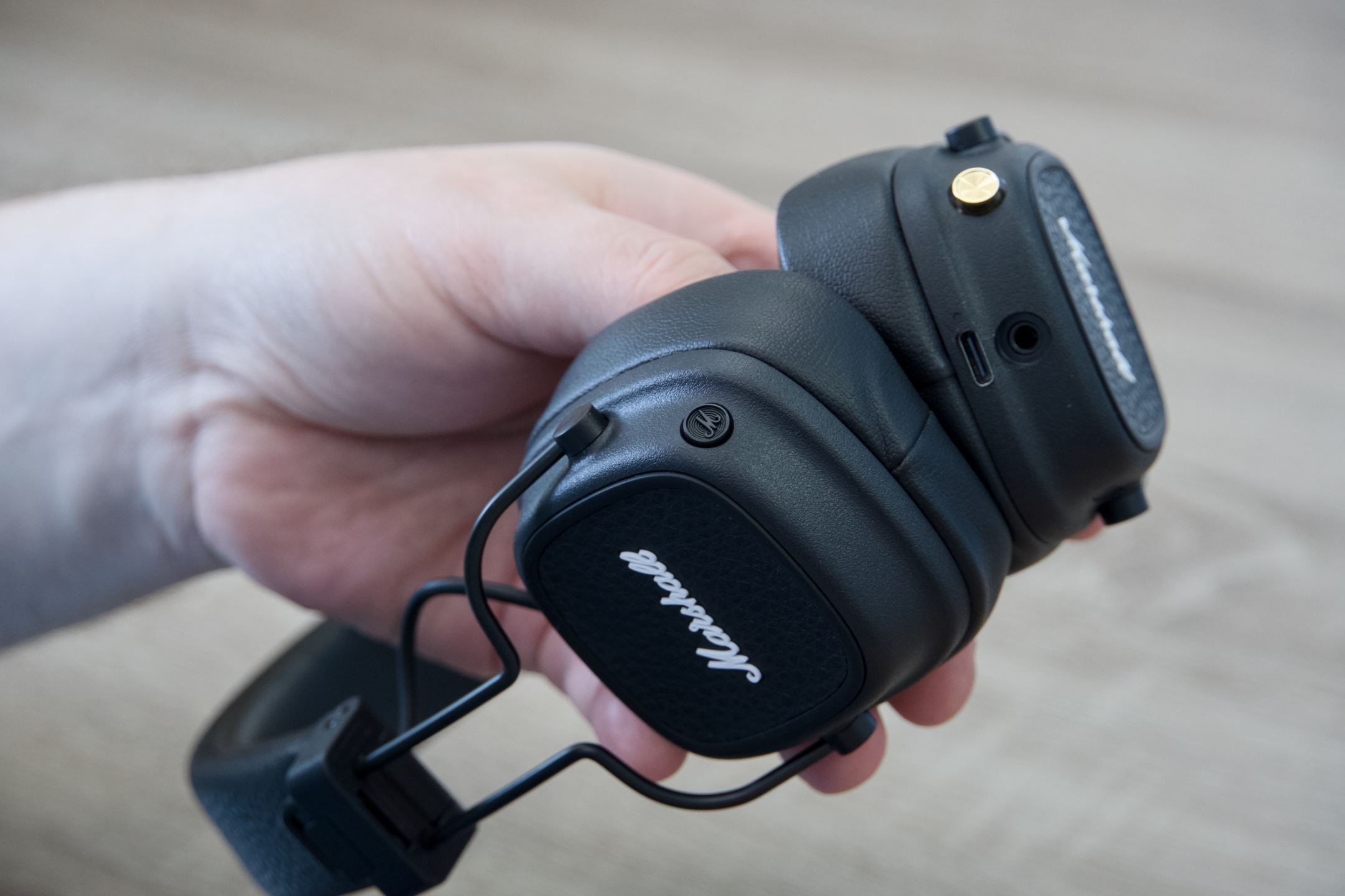 Samotný most je velmi ohebný, díky čemuž se přizpůsobí takřka komukoli, a zároveň délkově nastavitelný zhruba v rozsahu 33 až 42,5 cm. Pravé sluchátko je vybaveno portem USB-C, přičemž při jeho umístění na dobíjecí plochu lze energii dočerpat také bezdrátově. Dále se zde nachází multifunkční tlačítko ve zlatém provedení známé i z předchozí generace a klasický 3,5mm audio konektor. Na levé straně je uživateli k dispozici nový ovládací prvek označený písmenem „M“, jehož chování, jak již bylo zmíněno, můžete modifikovat v aplikaci Marshall Bluetooth.