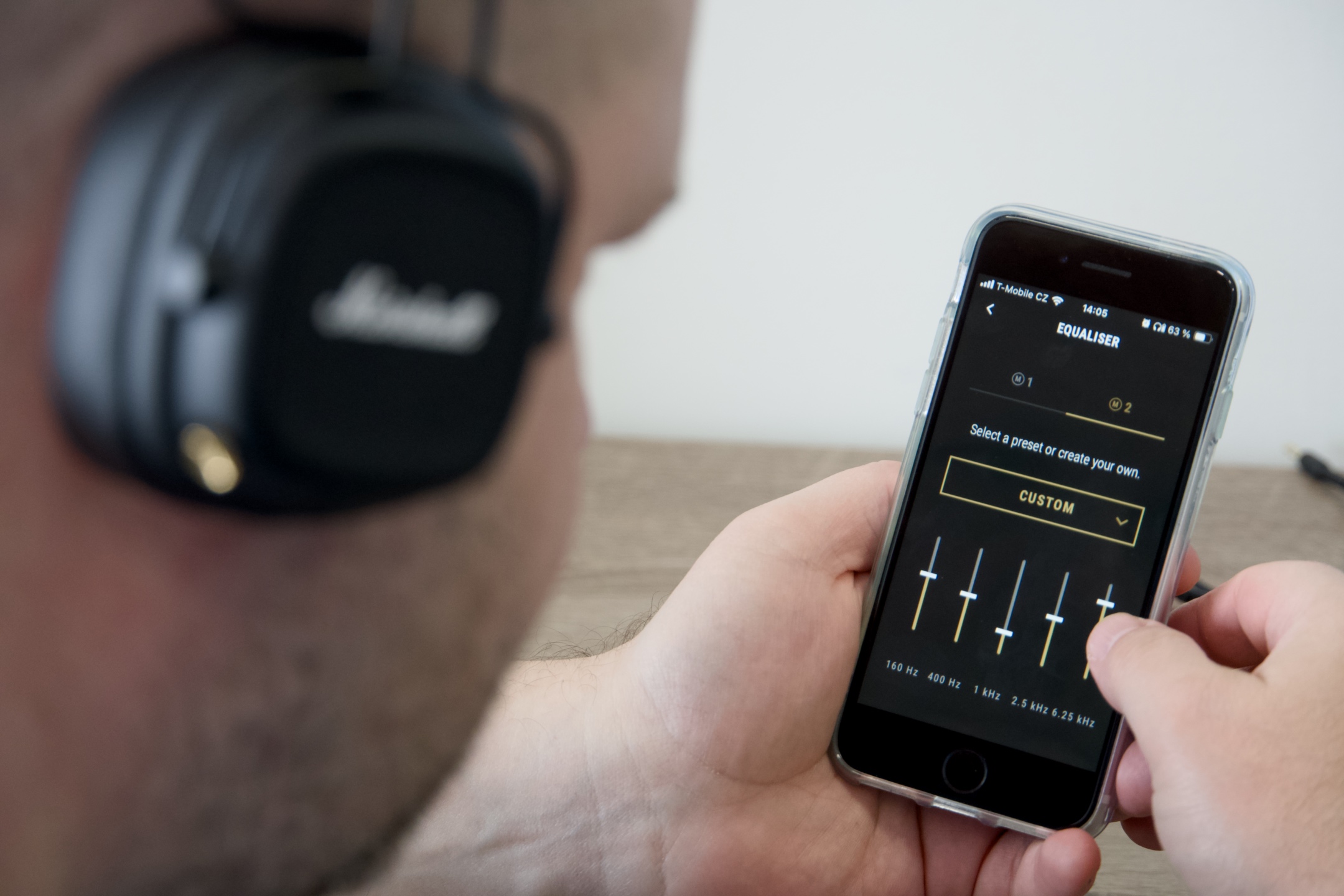 Šikovný nástroj Marshall Bluetooth najdete v App Store i na Google Play a získáte s ním kromě možnosti updatu firmwaru především přístup k detailnímu nastavení frekvenčních úprav s šesti presety, mezi nimiž nechybí předladěný firemní zvuk, zvýraznění jednotlivých pásem ani varianta Custom poskytující prostor osobním preferencím.