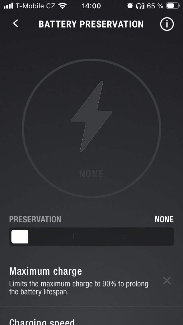 Nabídka pokračuje třeba volbou vypnutí zvukové odezvy, výběrem časové prodlevy pro přechod do režimu spánku či velmi užitečných opatření pro zvýšení životnosti baterie. Ta s tímto cílem omezí maximální kapacitu i rychlost nabíjení a podřídí ji ideálním teplotním podmínkám.