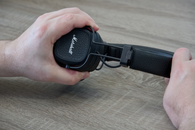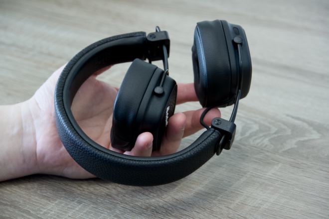 Major V mají okolo uší téměř čtvercový tvar se zaoblenými hranami. Zvenčí je zdobí výrazný nápis Marshall na černém podkladu s efektní texturou, kterou najdete rovněž na vnějším obvodu mostu, zatímco vnitřní část doléhající k hlavě je opatřena bohatým polstrováním. Ze stejného důvodu se nemusíte obávat jakýchkoli otlaků ani na temeni.