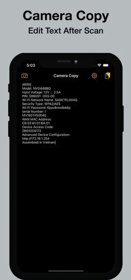 Camera Copy je nenáročná aplikace, která dobře plní svůj jediný úkol. Jednoduše naskenuje fotografii a zkopíruje text. Jakmile máte text, můžete jej upravit a uložit. Aplikace podporuje angličtinu, francouzštinu, italštinu, němčinu, španělštinu a portugalštinu.