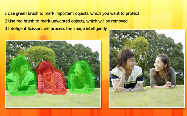 Aplikace Intelligent Scissors představuje snadno použitelný nástroj pro úpravu fotek na Macu, se kterým odstraníte nežádoucí objekty jako jsou lidé, text, budovy nebo cokoliv jiného. Navíc dokáže zvětšit či zmenšit fotku bez ztráty důležitých detailů. Použití je velmi jednoduché. Stačí jen označit červeně nežádoucí oblast nebo naopak zeleně chránit důležité části a Inteligentní Nůžky se postarají o zbytek.