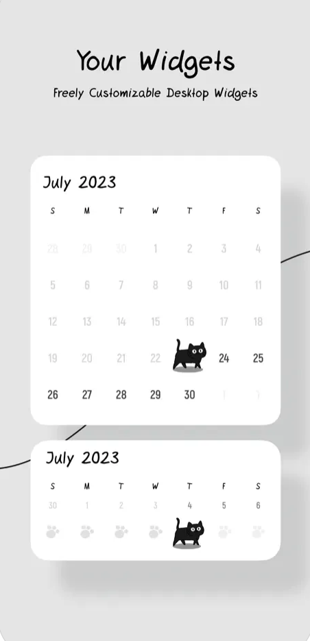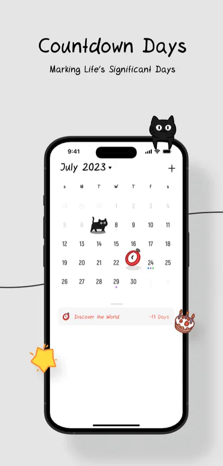 Aplikace Cat Calendar With Widgets umožňuje zaznamenávat důležité události nekomplikovaným způsobem. Pomocí jedinečné funkce odpočítávání můžete odpočítávat čas do zajímavých nebo důležitých dat. Kočky s vámi budou sledovat čas, aby byl každý den o něco jasnější.