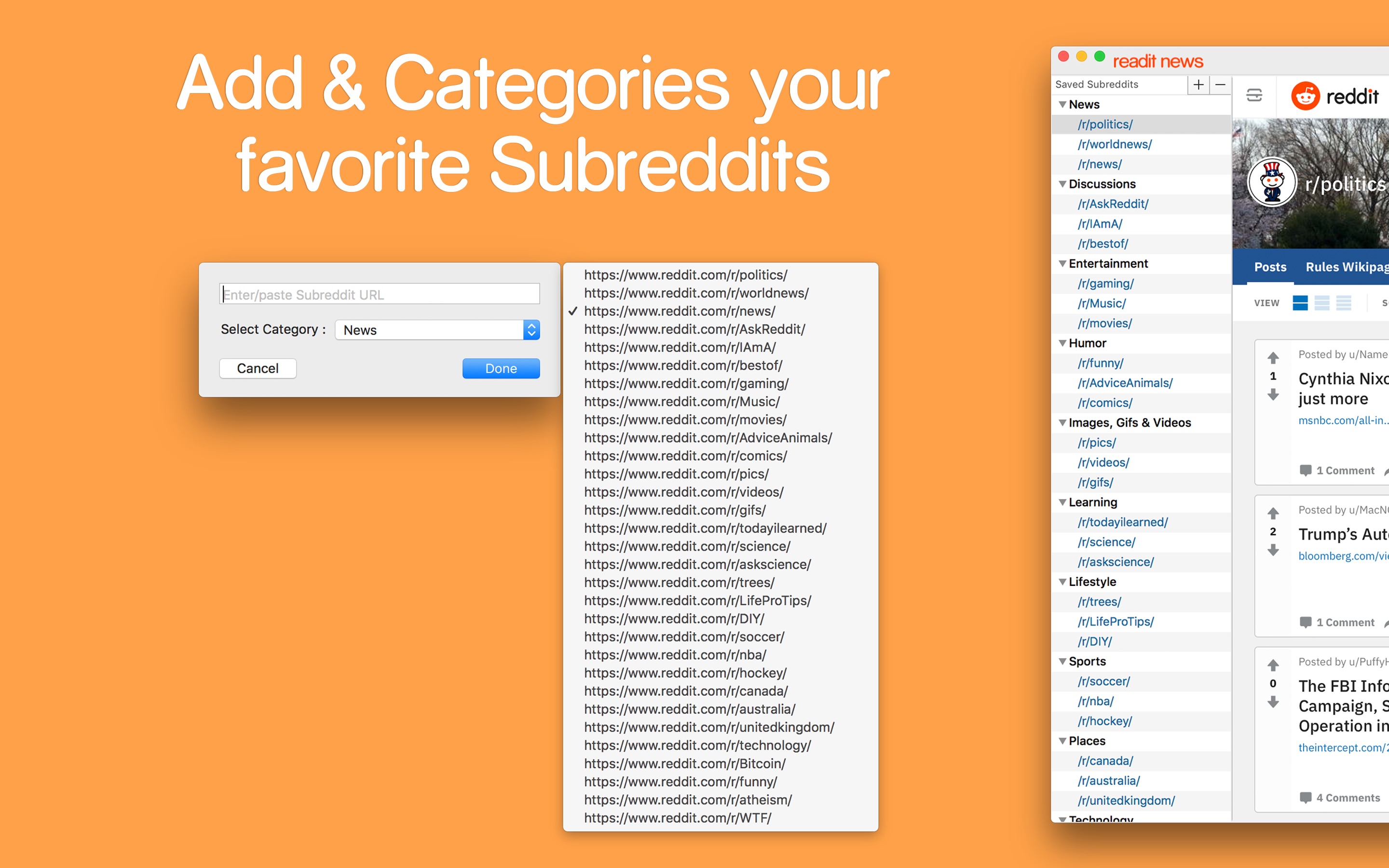Už žádné zmatené listování a přepínání mezi jednotlivými stránkami Reddit zdrojů (subredditů). Readit News vám je všechny přehledně zorganizuje do kategorií, které si sami nastavíte. Můžete si tak snadno vytvořit vlastní systém a mít neustálý přehled o dění ve vašich oblíbených komunitách. Ať už vás zajímá technologie, sport, nebo třeba vtipné obrázky, vše budete mít na jednom místě. Readit News myslí i na minimalismus a nabízí nenápadný přístup k vašim oblíbeným subredditům. Stačí kliknout na ikonu v liště nabídky a v jediném okně uvidíte shrnutí všech důležitých příspěvků z vybraných zdrojů. Nebudete tak rušeni žádnými zbytečnostmi a soustředíte se pouze na to, co vás baví. Samozřejmě si můžete nastavit i upozornění na nové příspěvky, abyste nikdy nezmeškali žádnou novinku. Ať už jste zaníceným fanouškem konkrétního tématu, nebo jen rádi sledujete aktuální trendy, Readit News vám pomůže zůstat v obraze. Aplikace navíc automaticky přepíná mezi světlým a tmavým režimem podle vašeho nastavení, což nejen šetří baterii, ale také zaručeně potěší vaše oči. Ať už dáváte přednost klasickému světlému zobrazení, nebo preferujete moderní tmavý režim, Readit News se přizpůsobí vašim preferencím.