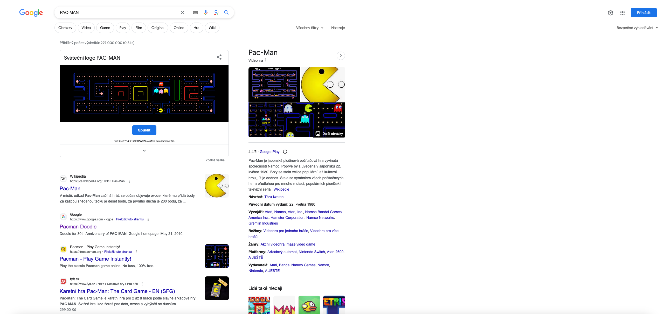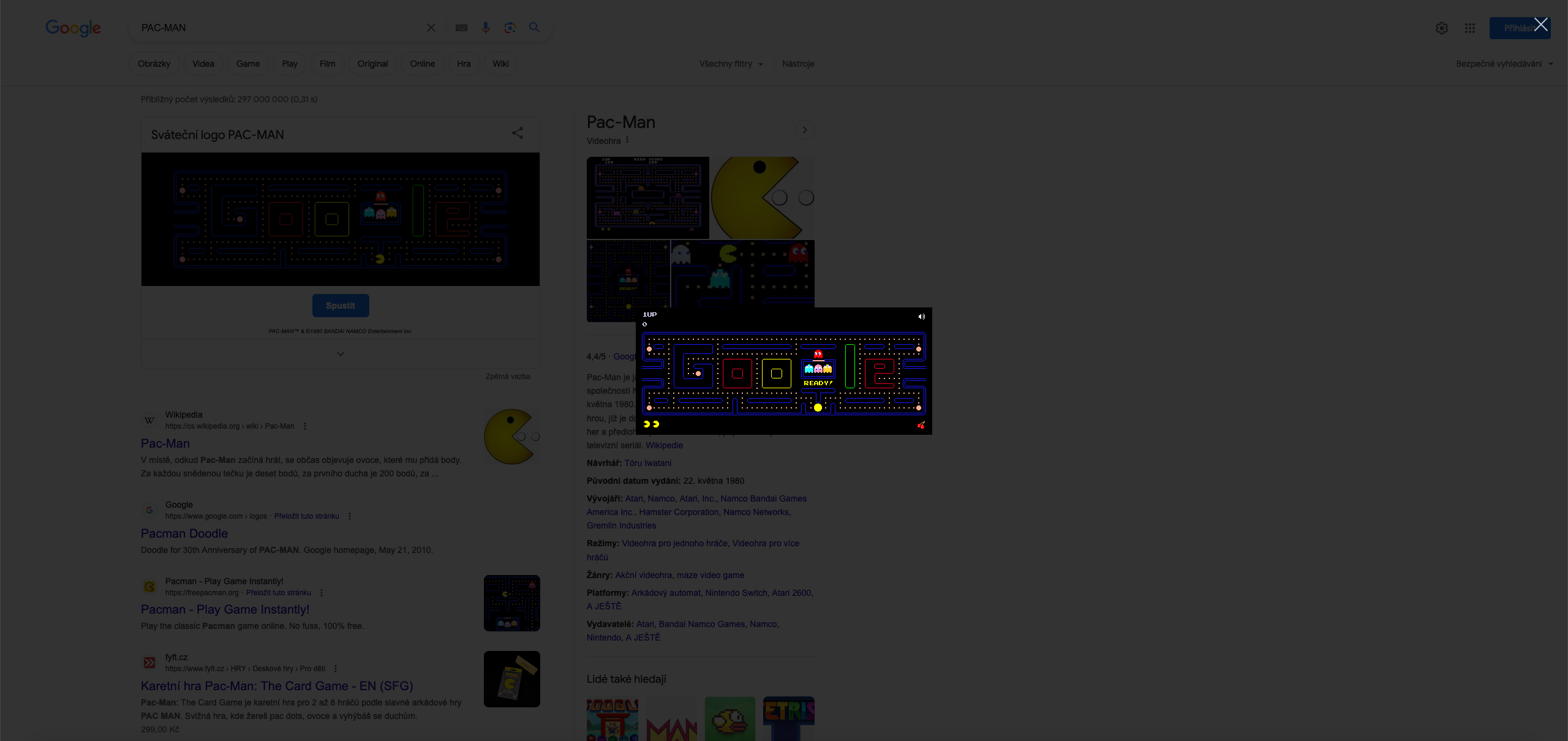 Společnost Google je proslulá svými kreativními oslavami nejrůznějších výročí a událostí na své domovské stránce. V roce 2010 tak s humorem a zábavou uctila 30. narozeniny legendární hry Pac-Man –zahrát si ji můžete dodnes. Stačí do Googlu zadat výraz PAC-MAN a pod vyhledávacím polem se vám zobrazí rozhraní, ve kterém se můžete dle libosti oddat retro zábavě.