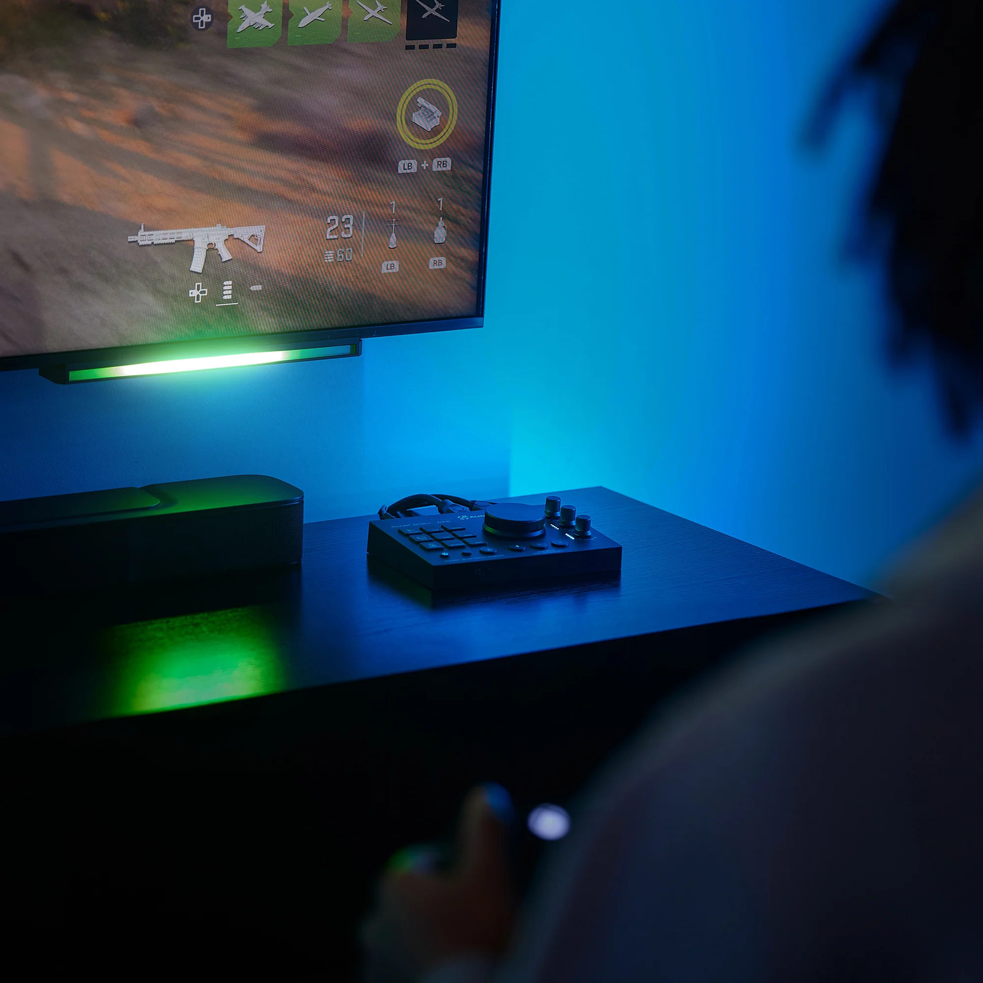 Existují však hráči, kteří mají problémy se sluchem nebo nemohou mít z nějakého důvodu sluchátka ani 7.1 ozvučení místnosti, ve které hrají. Nejen pro ně je tu vychytávka s názvem Audio Radar, která dokáže bez použití jakéhokoli softwaru v konzoli nebo počítači pouze pomocí napojení na zvukový výstup převést zvuk na zobrazení pomocí šesti LED pásků, jenž si nalepíte na televizor nebo monitor. Tyto pásky pak vizuálně ukazují, odkud přichází zvuk.