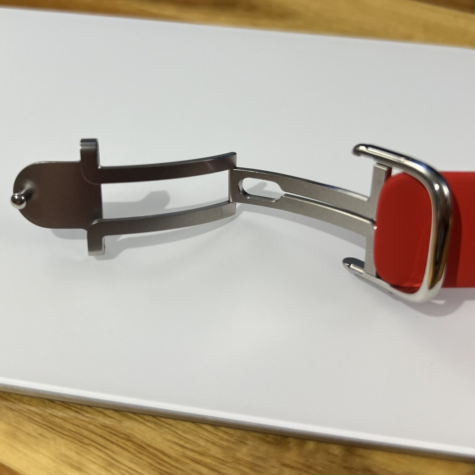 Jak můžete vidět výše, Apple testoval u silikonového řemínku kovovou sponu nebo chcete-li přezku, která zajišťovala pevné a bezpečné uchycení řemínku na zápěstí. K leakerovi vystupujícímu pod přezdívkou StellaFudge se měl řemínek dostat od některého ze zaměstnanců Applu, který na projektu pracoval, avšak nakonec nebyl jeho projekt dotažen do konce a představen veřejnosti. Poměrně zajímavé je pak to, že stejný mechanismus chtěl Apple použít i u kožených řemínků, jejichž prototypy v hnědé, červené a fialové měly taktéž vzniknout. Nakonec se však k realizaci Apple neodhodlal – dle leakera dost možná proto, že výroba celého mechanismu by byla relativně složitá, tedy při pomyšlení na to, že nahrazení klasickou přezkou či „kolíčkem“, který nyní využívá Apple u silikonových řemínků je jednoduché a účinné řešení.
