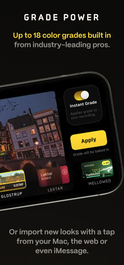 Nová aplikace s názvem Kino umožňuje nahrávat video snadno a rychle a nabízí přitom podporu pro celou řadu přednastavených barevných profilů. Funkce Instant Grade umožňuje uživatelům vybrat si přednastavení vytvořené odborníky nebo importovat vlastní LUT tabulky. Díky aplikaci barevného gradingu přímo během natáčení šetří aplikace Kino uživatelům čas a zároveň také odpadá následná editace. Funkce AutoMotion pomáhá uživatelům zachytit filmové pohyby v záběru díky výchozímu použití 180° úhlu závěrky. Když je k dispozici dostatek okolního světla, změní se označení Auto na zelené, což znamená, že je ideální čas pro zachycení pohybu.