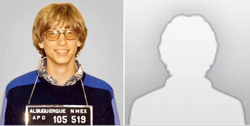 V roce 1977 zadržela Billa Gatese policie poté, co jel na červenou a řídil bez řidičského průkazu. Mlady Bill Gates byl zatčen v Albuquerque v Novém Mexiku a policie pořídila tehdy 21letému Billovi fotografii s visačkou na krku, kterou znáte z amerických filmů a zločincích. Tato fotografie se následně stala celkem legendární a to díky tomu, jak rostl Microsoft a samotný Bill Gates se stal tehdejším nejbohatším mužem na světě.