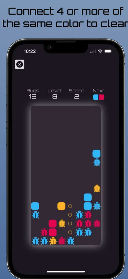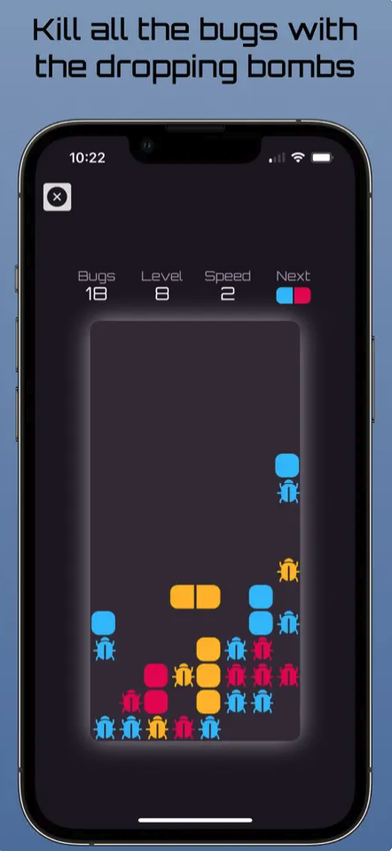 Cílem hry Bug Bomber je spojit čtyři nebo více stejných barev a zabít všechny brouky. Hra obsahuje 21 úrovní obtížnosti a tři různé rychlosti. Můžete si zkontrolovat svůj postup a pokusit se překonat své nejvyšší skóre.