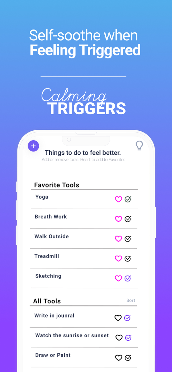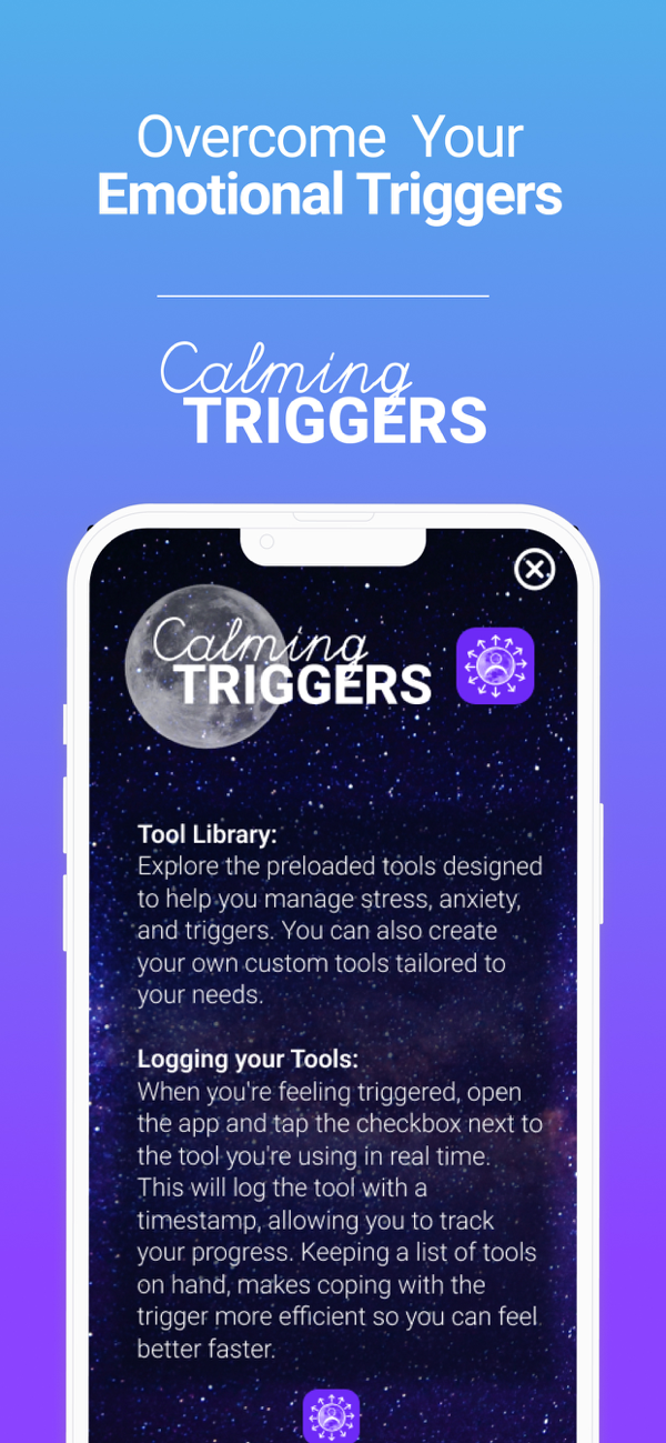 Stáhněte si Calming Triggers a začněte sledovat, co vám pomáhá cítit se lépe! Ukládejte si k tomu afirmace, poznámky a další věci. Vydáte se na cestu k lepší psychické pohodě s aplikací Calming Triggers, vaším komplexním pomocníkem pro zvládání stresu, úzkosti a spouštěčů. Aplikace vám pomůže budovat emocionální odolnost díky knihovně nástrojů, záznamům v reálném čase a sledování pokroku.
