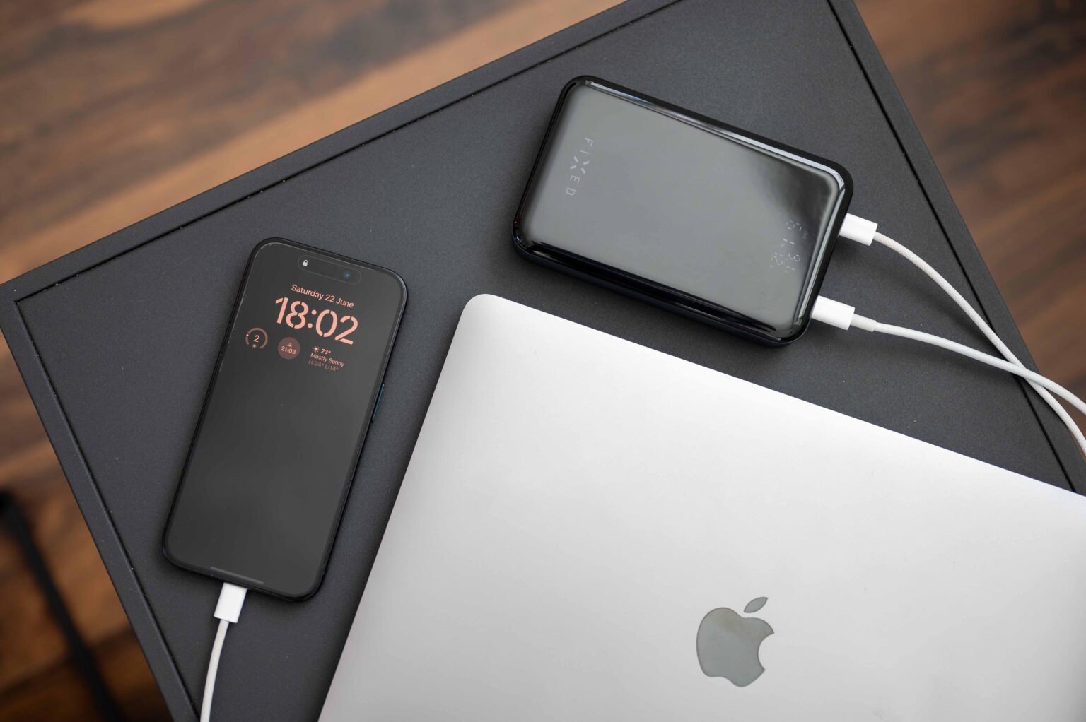 Protože v létě pracuji moc rád ze zahrady a zároveň nejsem úplně fanoušek rozmotávání prodlužovací šňůry, na kterou bych si mohl napojit v případě potřeby nabíječku od MacBooku či mé jiné elektroniky, svými papírovými specifikacemi mě FIXED Zen 20 Pro oslovila. A musím říci, že jen u oslovení specifikacemi powerbanka naštěstí neskončila. Rychlé nabíjení, které výrobce slibuje v technických specifikacích, jsem si totiž užil dosyta a to zejména v kombinaci nabíjením iPhonu 15 Pro a MacBooku Air M3. Obě tato zařízení totiž zvládala powerbanka nabíjet současně a to maximální možnou rychlostí.