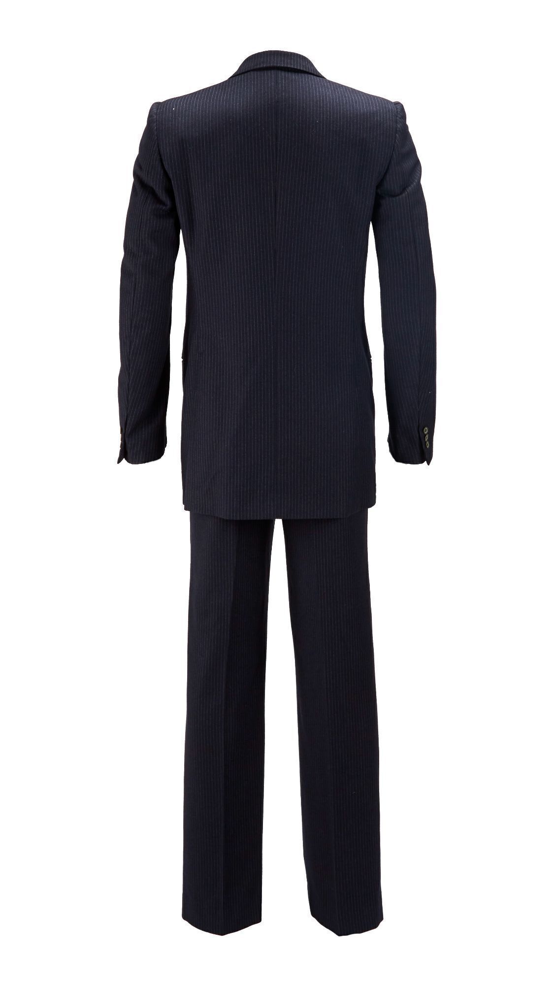 100% cupro oblek má tenké svislé pruhy, dvě přední kapsy, jednu náprsní kapsu, tři vnitřní kapsy, šedé knoflíky, krémovou podšívku ze směsi hedvábí, štítek velikosti „39/49.“ Spolu s párem odpovídajících společenské kalhoty, velikost 39L,“ jej lze sehnat na aukčním seznamu Julien’s Auctions. Jako bonus k němu dostanete vintage sponu Apple Macintosh, který byl nalezen v kapse obleku. Co zde naopak chybí, je bílá košile, kterou měl Jobs na fotce v obleku na sobě. A pokud by vám náhodou nesedla modrá barva, vězte, že do aukce míří i další kousky ze Jobsova šatníku v čele s hedvábnou kravatou Polo Ralph Rauren s vyvolávací cenou 2000 dolarů.
