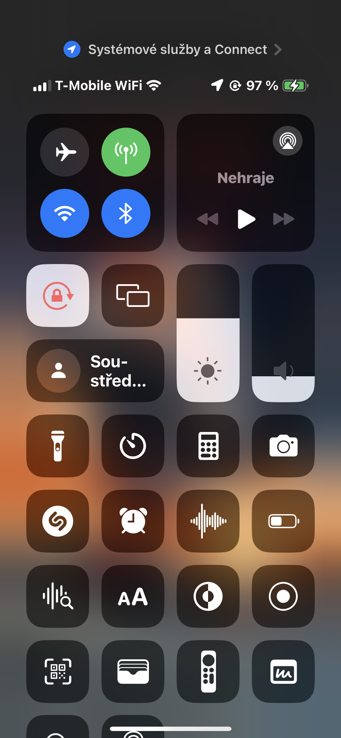 - Otevřete ovládací centrum přejetím prstem dolů (iPhone X a novější) nebo nahoru (iPhone 8 a starší).