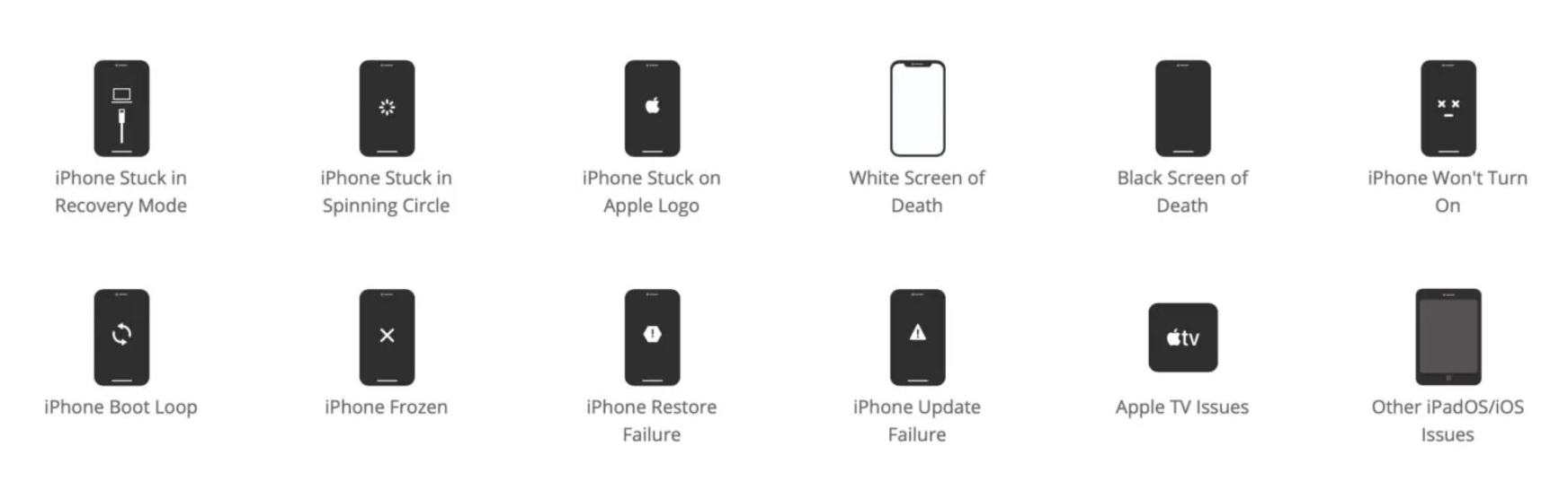 Tento opravný software může podporovat řešení více než 150 druhů problémů systému iOS, ať už se jedná o abnormality zařízení, černou obrazovku iPhone, iPhone nereaguje nebo chybu ovladače zařízení Apple, zaseknutý režim iOS, vše lze rychle opravit. Kromě těchto běžných problémů jím můžete opravit i složitější systémové problémy v případě, že zapomenete heslo k uzamčené obrazovce.