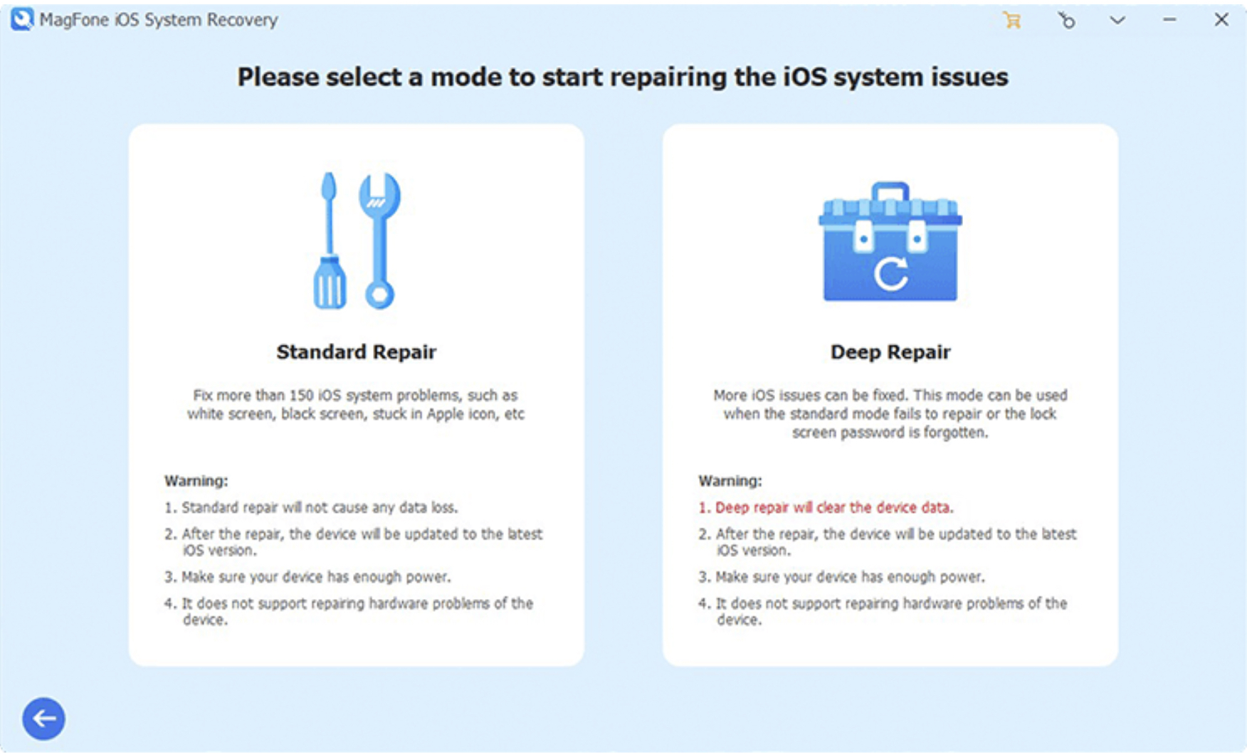 Většina opravného softwaru na trhu během procesu opravy iOS vymaže některá data z vašeho zařízení, čímž můžete přijít o některé důležité informace. Díky podpůrné technologii MagFone iOS System Recovery se však při opravě těchto běžných problémů systému iOS nemusíte obávat ztráty dat.