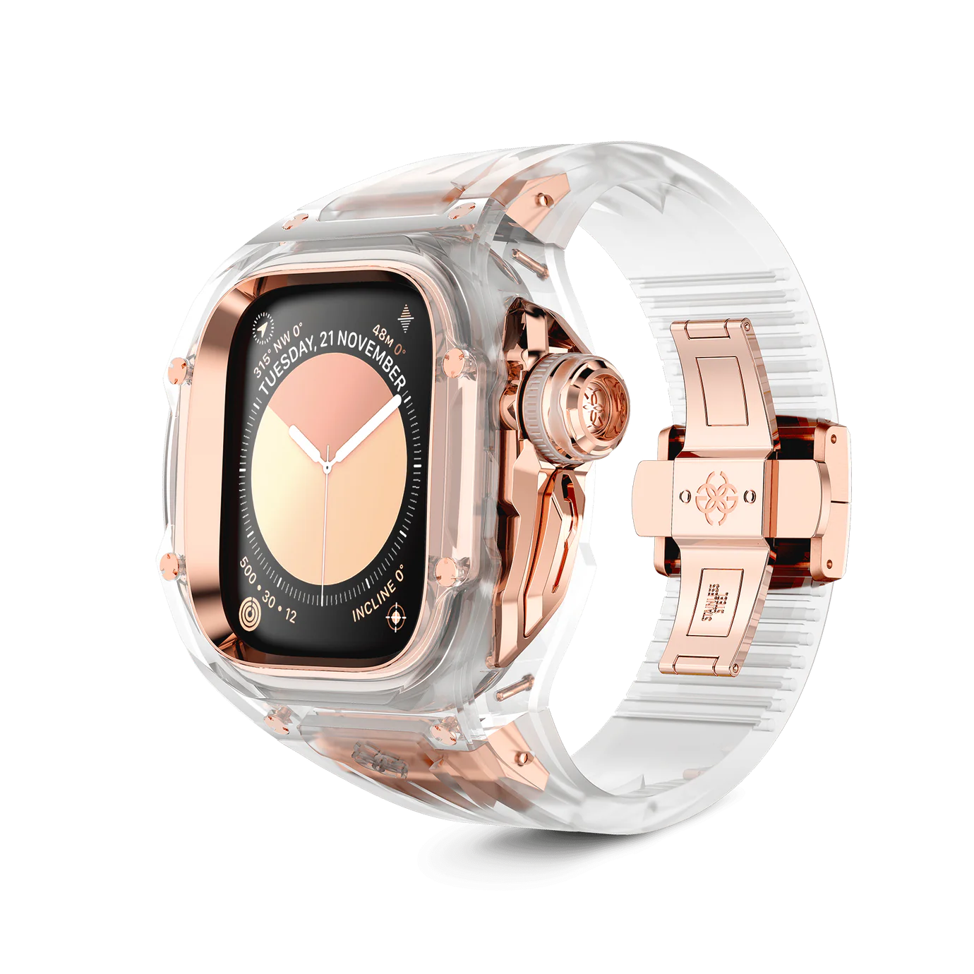 Pokud vám vaše Apple Watch nepřipadají dostatečně cool, pak máte možnost vyzkoušet řadu obalů a pouzder. Zatímco některé pouze změní barvu a ochrání vaše hodinky před poškrábáním, najdou se i taková pouzdra, která zcela změní vzhled hodinek. Mezi ty patří také pouzdro od Goden Concept. To není pouze samotným pouzdrem, ale rovnou má integrovaný také řemínek. Pokud se trošku orientujete v hodinkách, pak jistě na první pohled poznáte, z jakých značek a modelů autoři tohoto krytu vychází. Zatímco zapínání je jednoznačně inspirované u Patek Phillipe, samotný kryt a řemínek pak vychází z modelů od Franck Muller a Richard Mille, někteří pak uvidí také podobnost s hodinkami Bugatti od Jacob & Co.