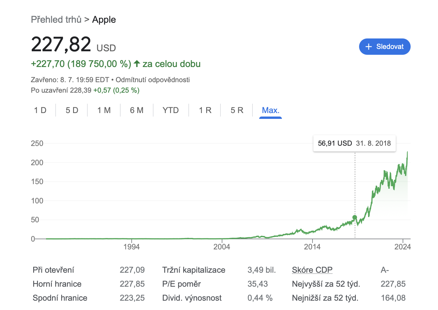Applu se velmi daří dlouhodobě, posledním pomyslným katalyzátorem jeho úspěchu pak bylo červnové představení iOS 18 a jeho prvního komplexního AI systému Apple Intelligence, který by měl celkovou využitelnost Apple produktů do budoucna velmi zlepšit a celkově zjednodušit. A přestože bude tato novinka zprvu k dispozici jen v USA, akcionáři jsou z i na základě předpovědí analytiků ohledně výrazného nastartování prodejů nových iPhonů právě v souvislosti s Apple Intelligence, doslova na větvi a hodnota Applu proto od června roste. Po včerejším uzavření burzy se zastavila konkrétně na hodnota 3,601 bilionů dolarů, přičemž druhý Microsoft má v tuto chvíli hodnotu 3,341 bilionu dolarů a třetí Nvidia 3,108 bilionů dolarů.