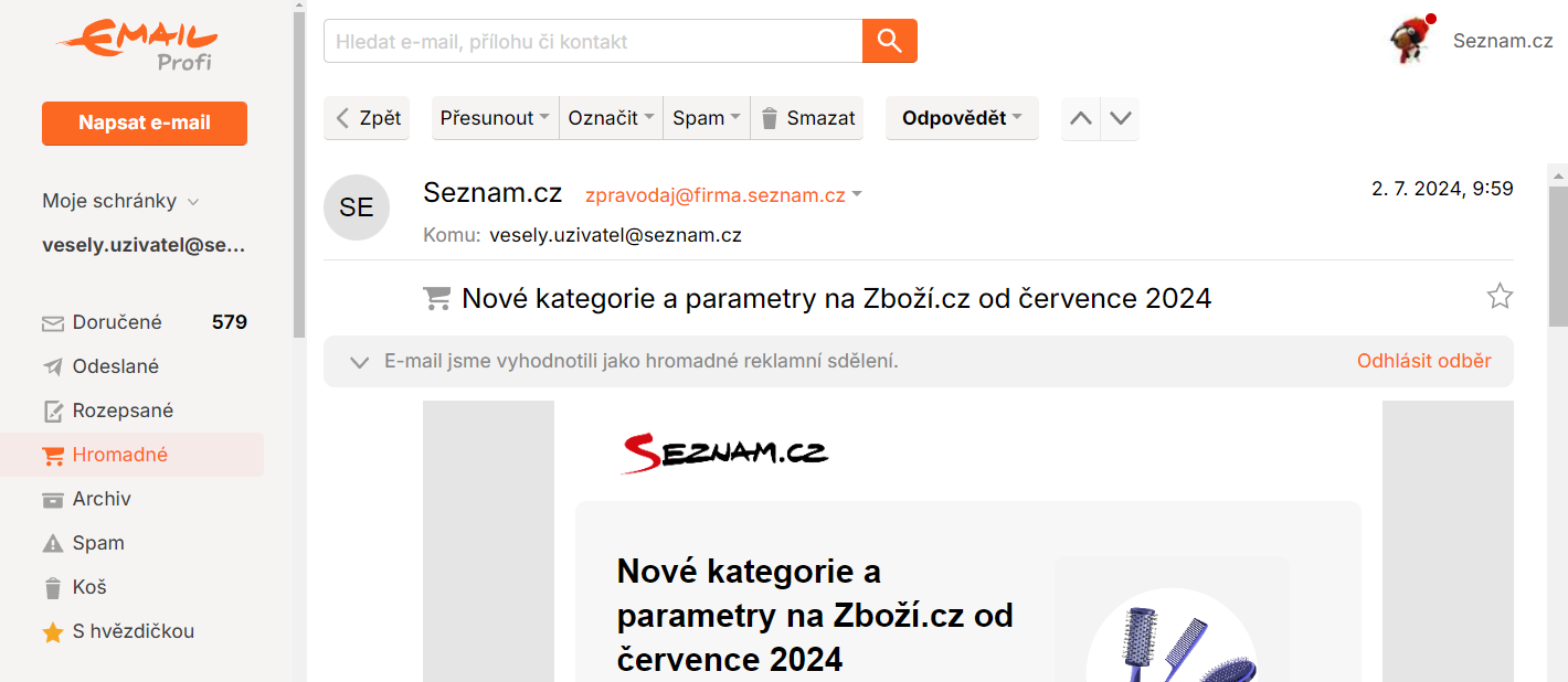 Na poli e-mailingu se ovšem nejedná o žádnou novinku. Mnoho poskytovatelů e-mailových schránek tuto funkci zavedlo již před delší dobou. Email od Seznamu dosud nabízel odhlášení z rozesílek, které uživatel označil za spam. Nyní tuto možnost nabízí u všech hromadných zpráv.