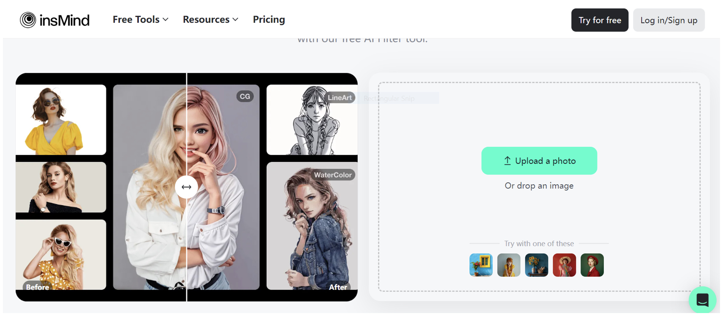 insMind je jeden z nejuniverzálnějších nástrojů pro AI filtry, který je dnes k dispozici pro přeměnu fotografií na krásná umělecká díla pomocí mnoha filtrů založených na umělé inteligenci.