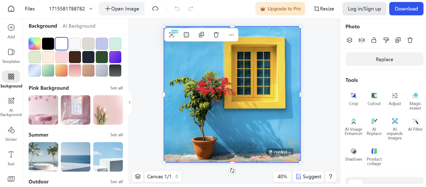 - Odstranění pozadí: InsMind má jeden z nejlepších dostupných odstraňovačů pozadí s umělou inteligencí. Jediným kliknutím dokáže okamžitě odstranit a nahradit pozadí, což je ideální pro zvýraznění produktů, předmětů nebo vytvoření průhledného pozadí pro projekty grafického designu. Algoritmus umělé inteligence přesně identifikuje předměty a pozadí.