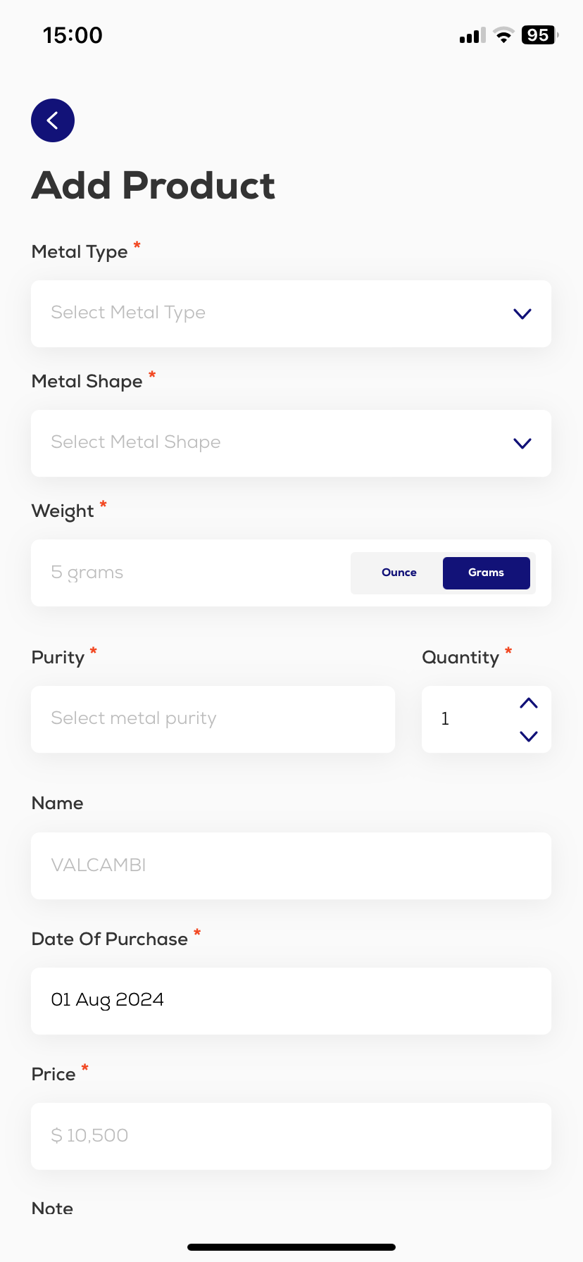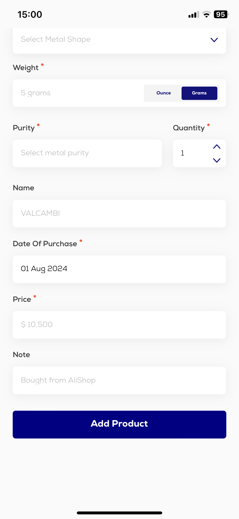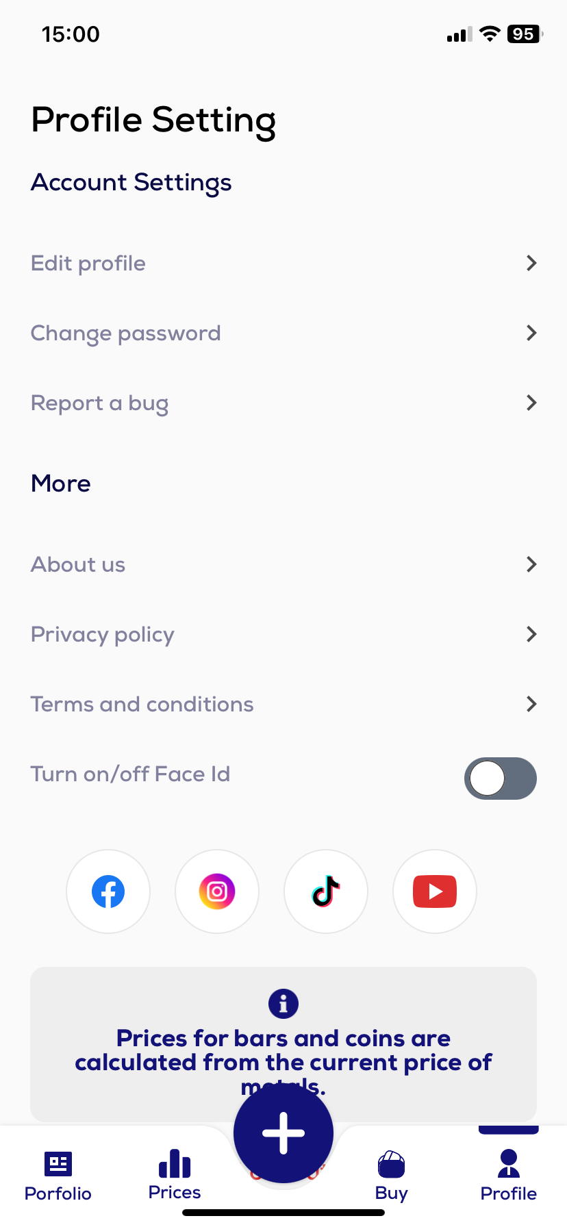 Aplikaci GoldFolio naleznete a stáhnete zdarma v App Store či Google Play. Po stažení postačí, když se zaregistrujete pomocí Apple ID. Po autentifikaci máte tedy vyhráno a můžete bez zbytečných odkladů zkoumat, co tato aplikace nabízí. Hned na úvodní straně můžete vidět své portfolio. Produkt přidáte kliknutím na velké tlačítko + ve spodní části obrazovky. Zde navolíte kov (zlato, stříbro, platina), čistotu kovu (počet karátů), množství a investovanou částku. V úvodním portfoliu vidíte, jak by se investice po čase vyplatila, přičemž můžete volit z opravdu mnoha různých kombinací.